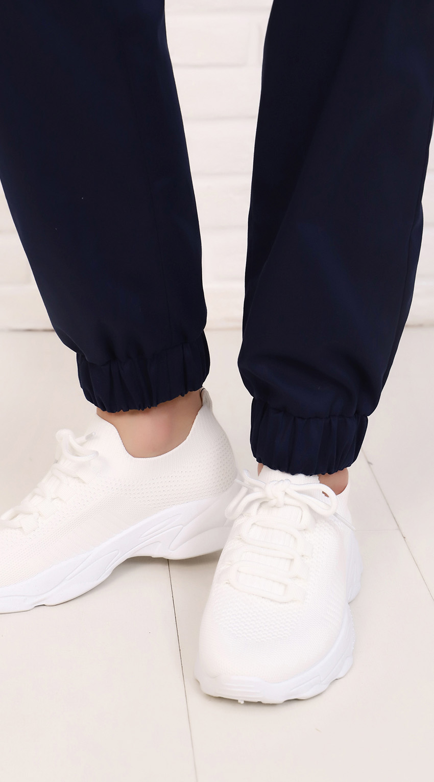 Низ брюк обработан манжетами с эластичной тесьмой внутри.