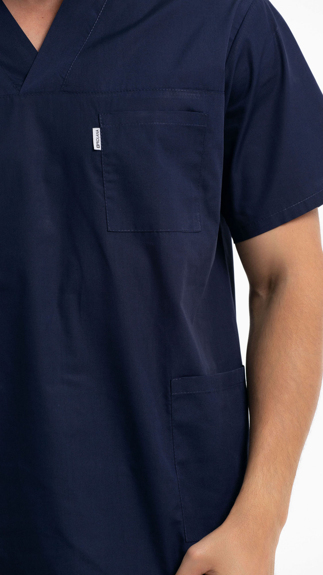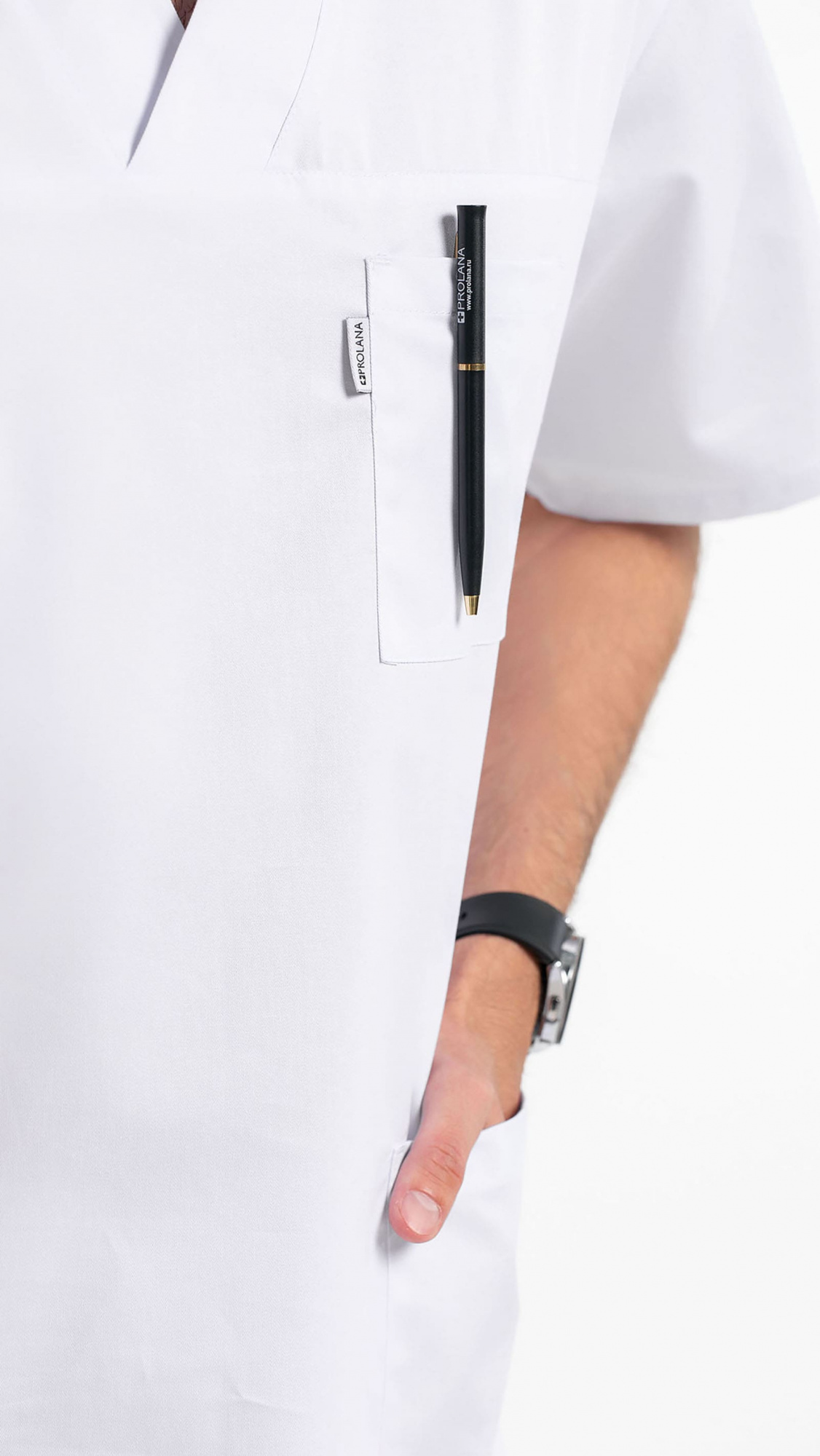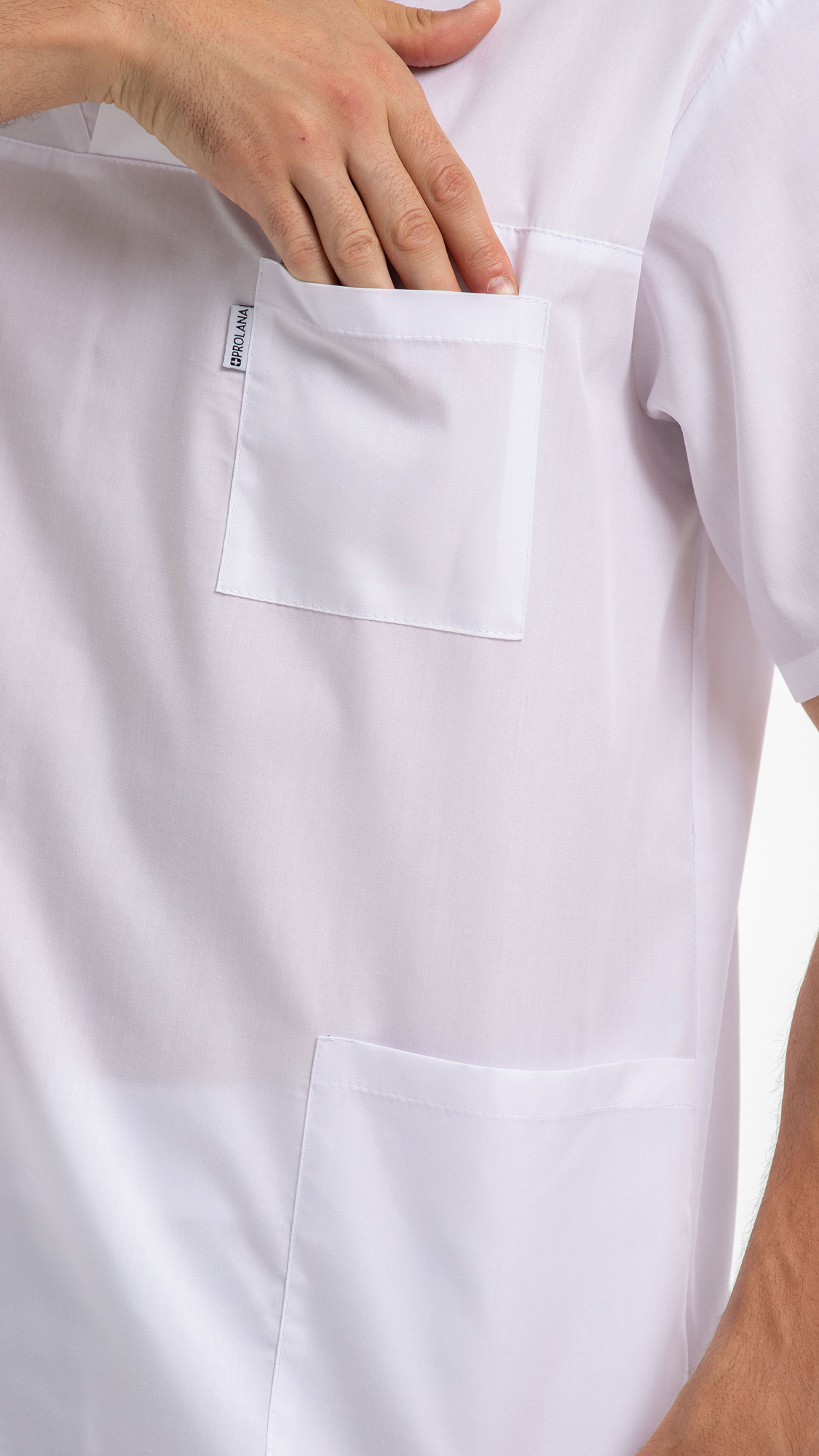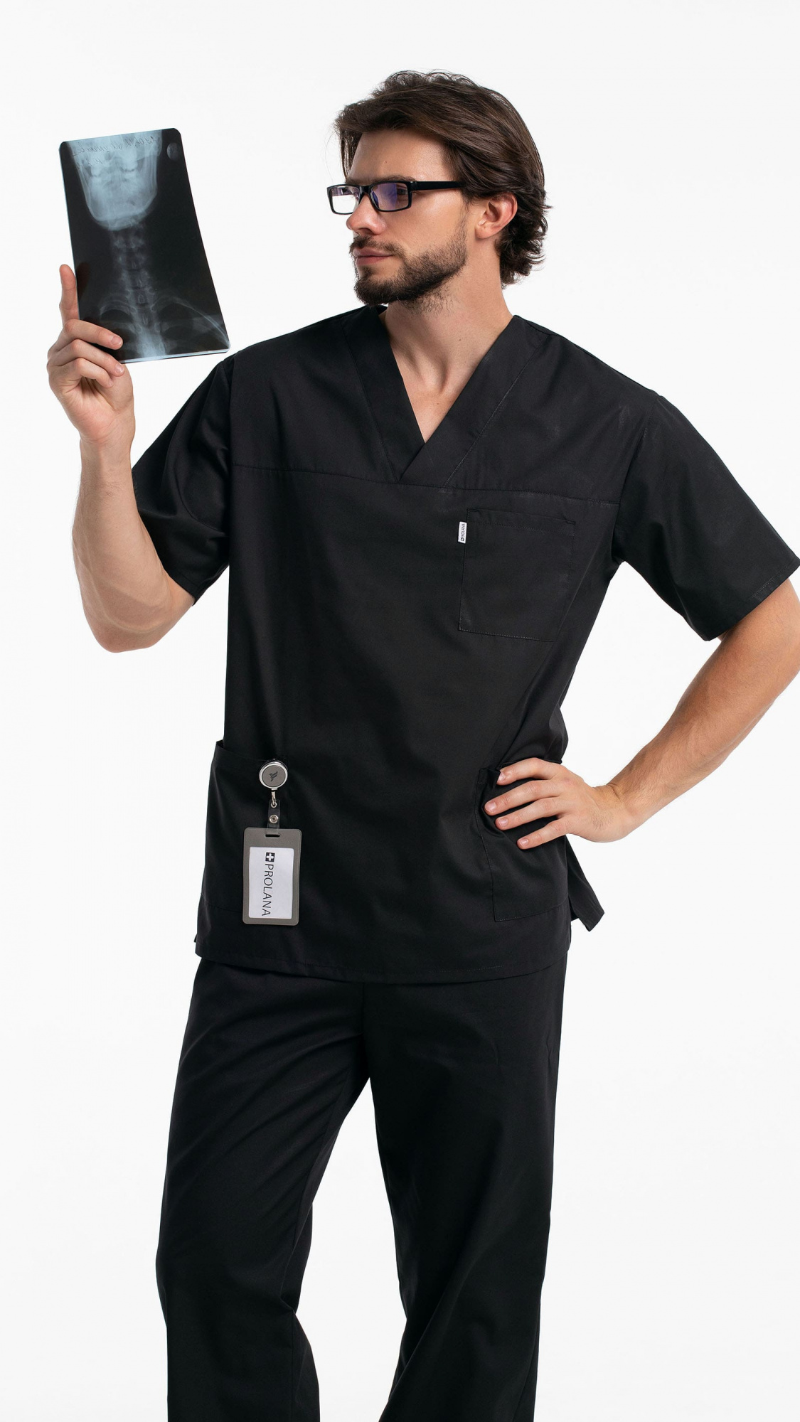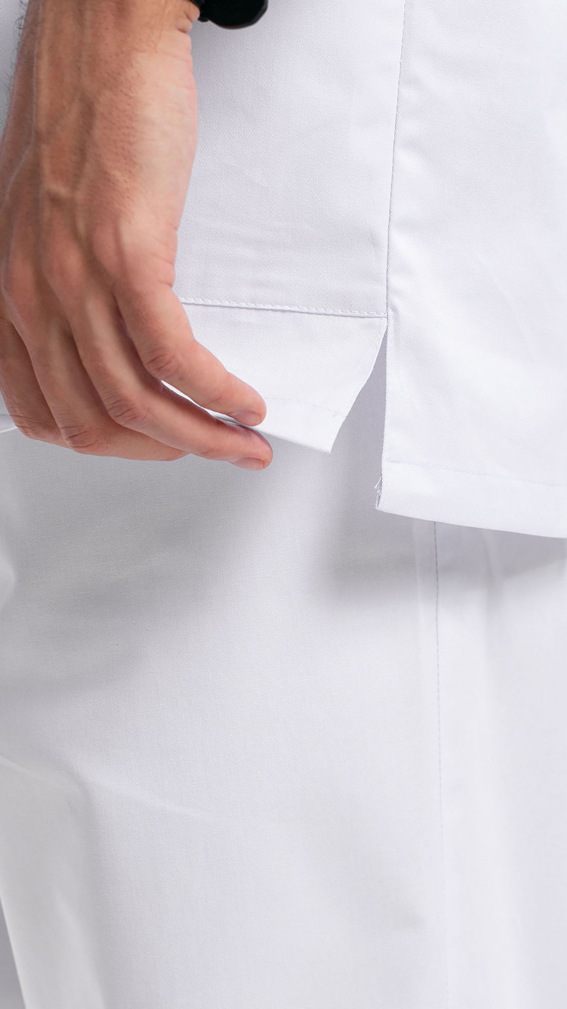 Костюм хирургический мужской состоит из блузы и брюк.Блюза прямого силуэта с V -образным вырезом горловины, с боковыми разрезами.