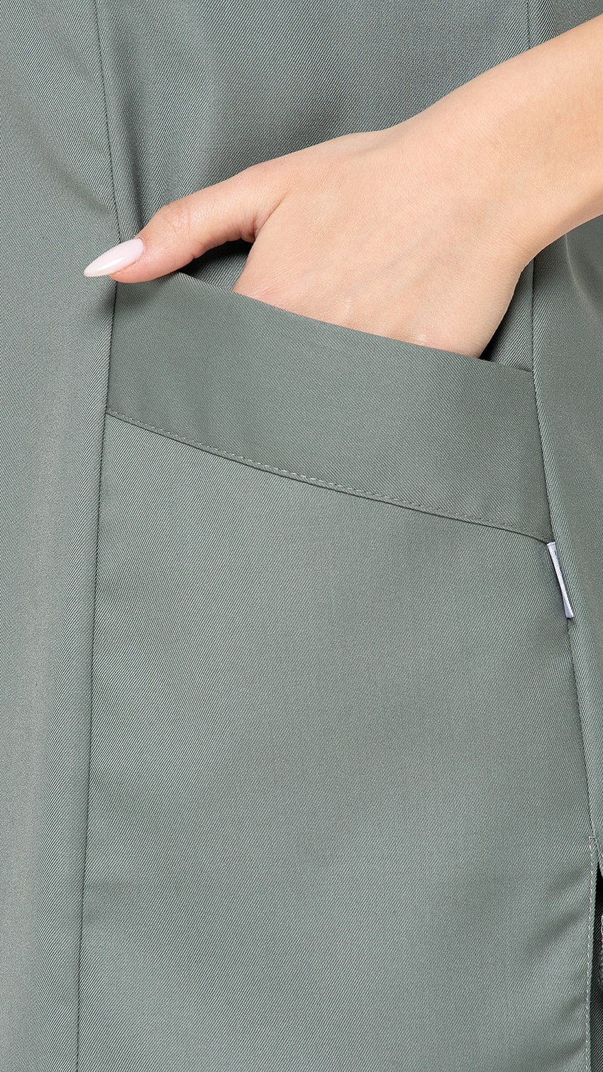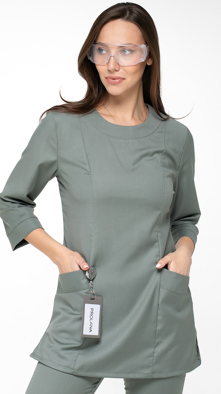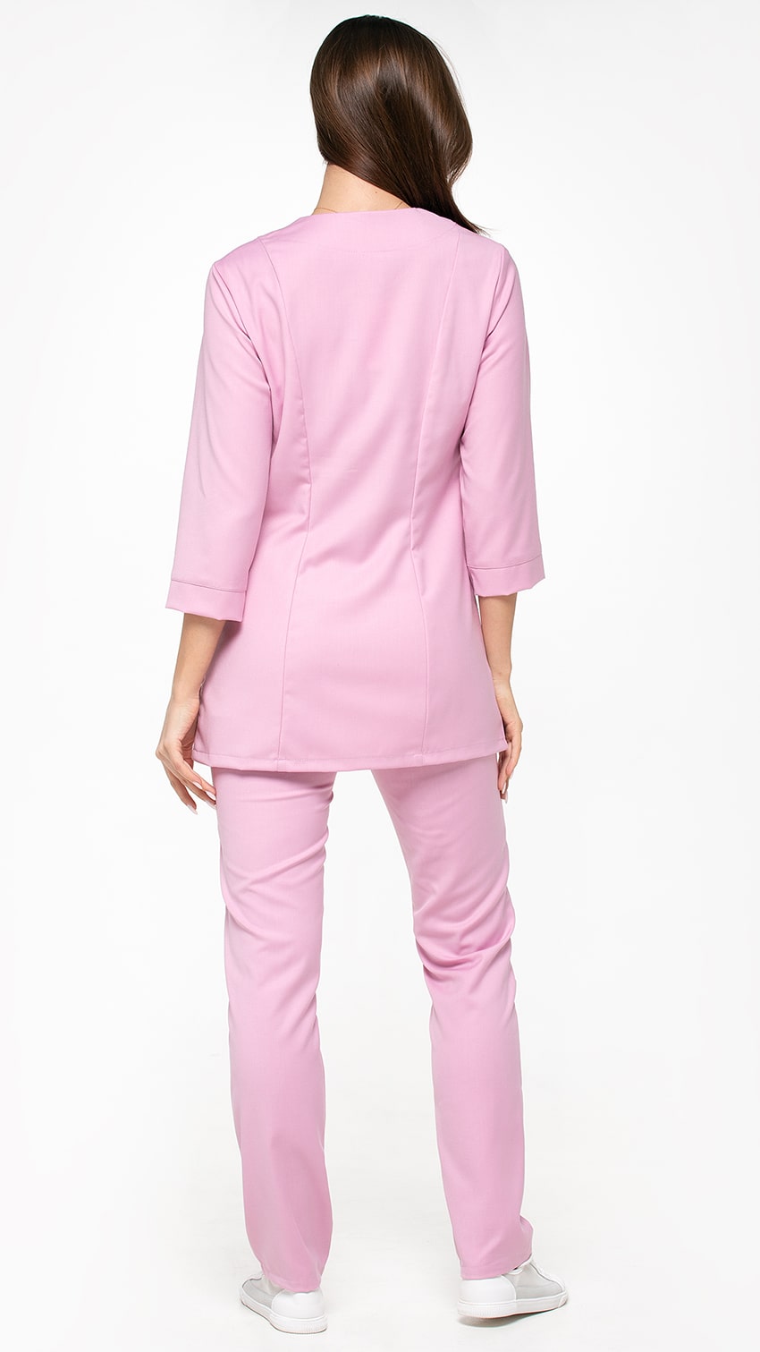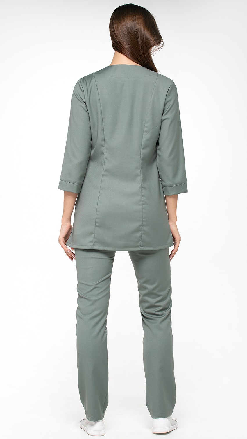 Костюм медицинский женский стрейч состоит из удлиненной блузы и медицинских брюк. Блуза полуприлегающего силуэта, с круглым вырезом горловины, с боковыми разрезами, с внутренними боковыми карманами, входящими в рельефные и боковые швы. Рукава длинной 3/4 ок 45 см. Брюки с притачным поясом, стянутым эластичной тесьмой и боковыми карманами с отрезными бочками с закругленным входом. Костюм медицинский изготовлен из смесовой ткани с составом 65% вискоза, 32% полиэфир, спандекс 3%. Данная ткань очень мягкая, струящаяся и комфортная в носке. За счёт большого содержания вискозы не электризуется и не вызывает раздражения кожи. Наша модель хирургического костюма подходит для следующих категорий использования: врачи, медсестры, ветеринары, студенты, лаборанты и другие профессии. В линейке представлены размеры с 42 по 52. Наши преимущества: высокое качество, собственное производство, оптимальные цены, современный крой.Характеристики