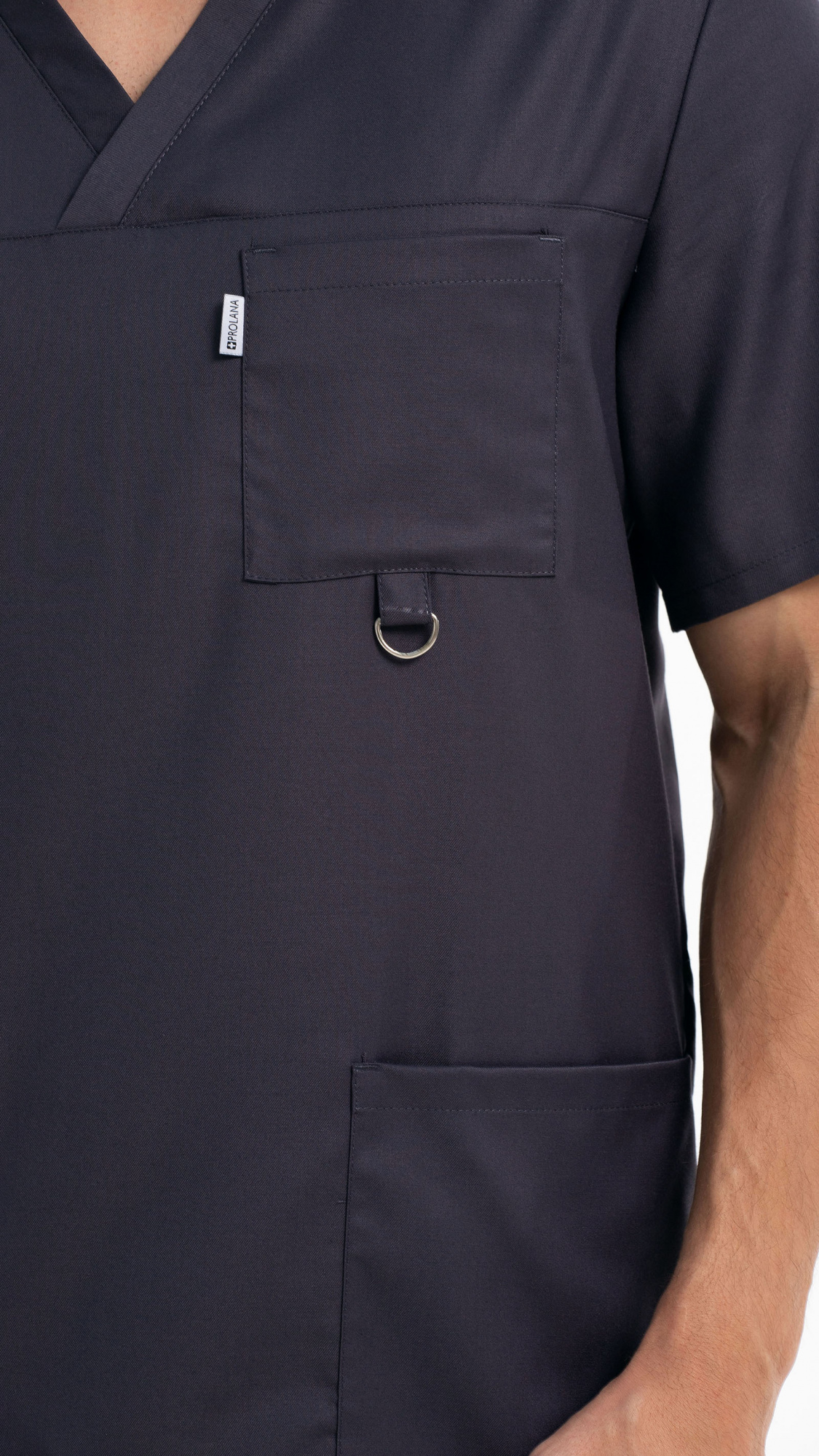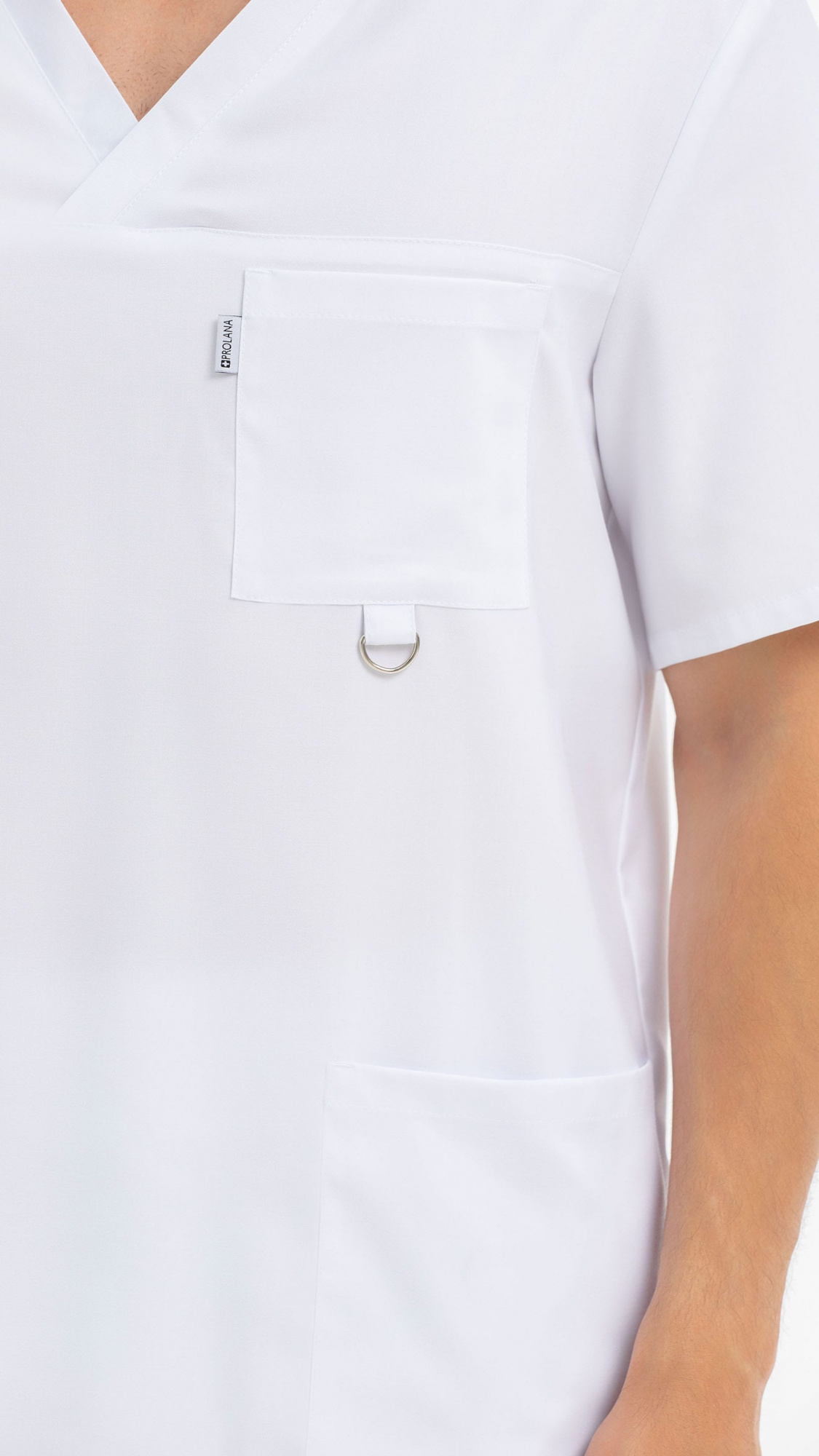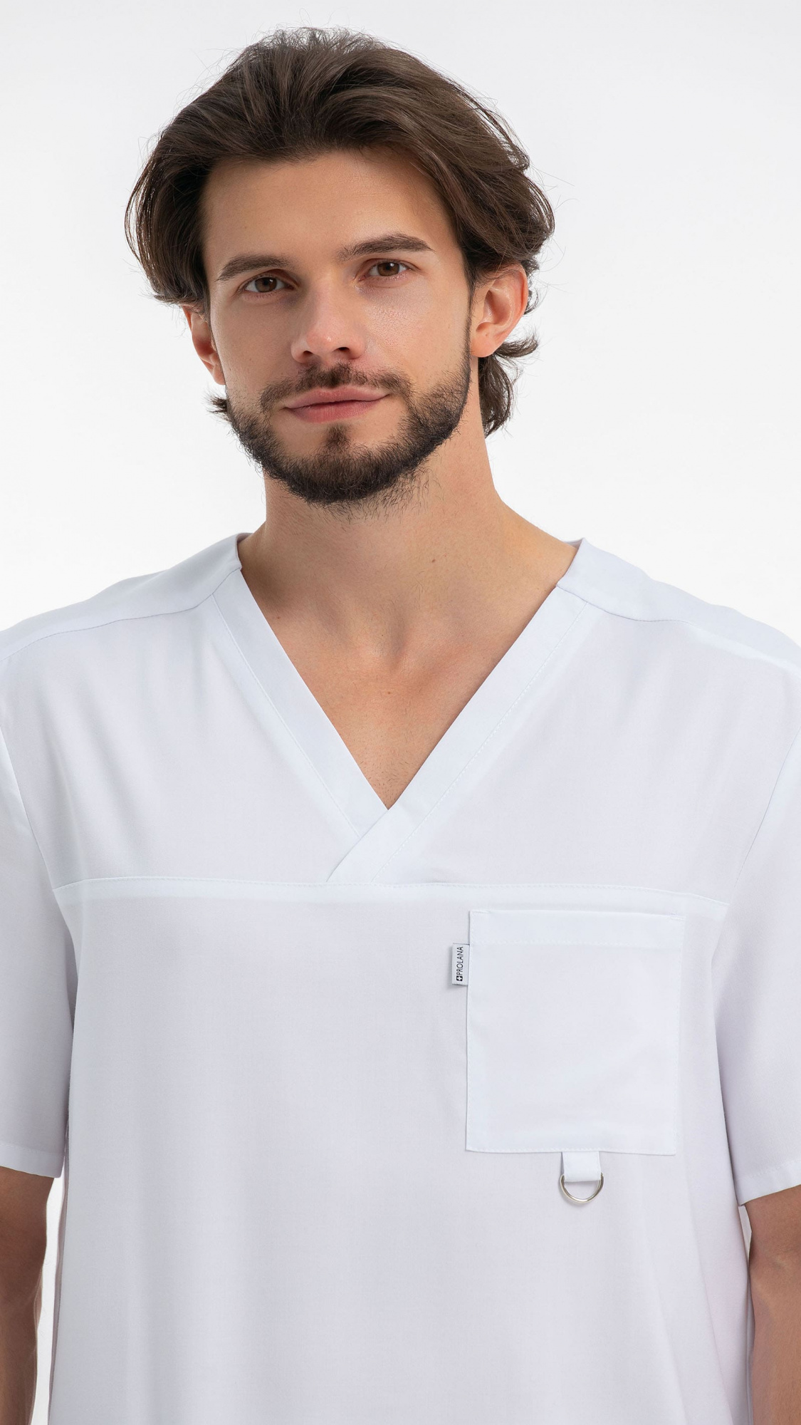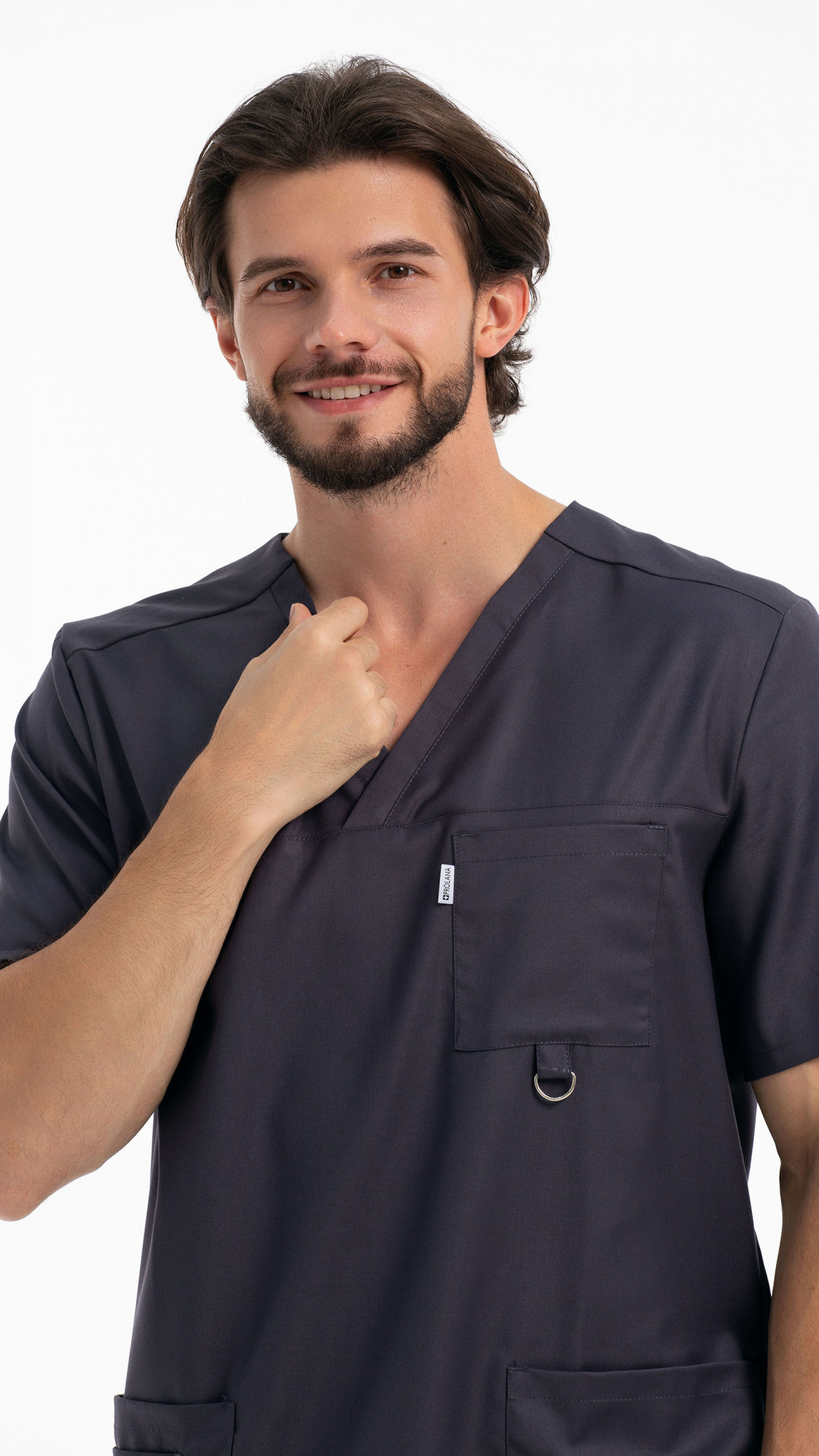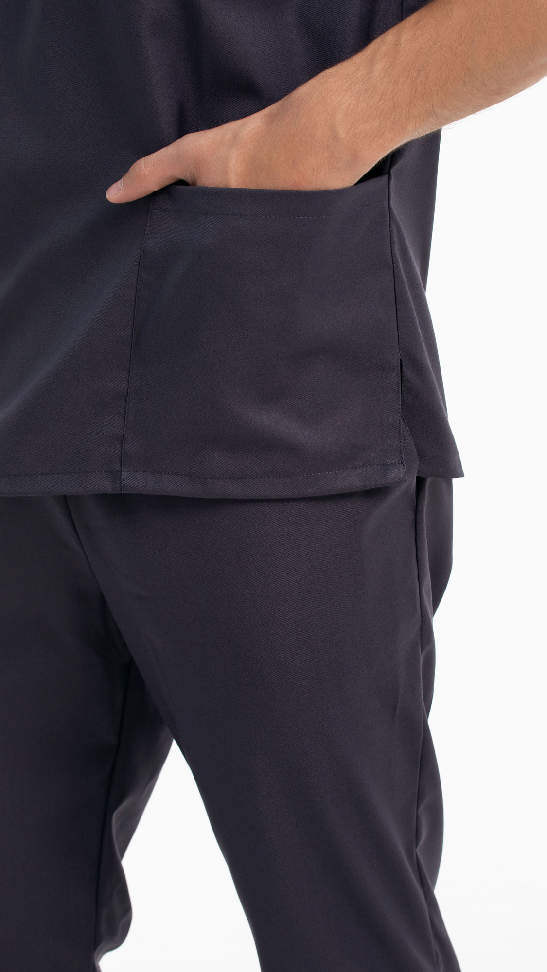 Костюм мужской хирургический состоит из куртки и брюк.Куртка прямого силуэта с V-образным вырезом горловины, с разрезами в боковых швах.