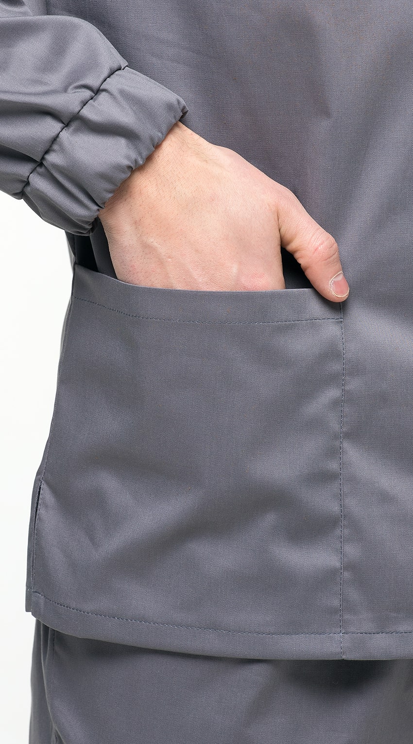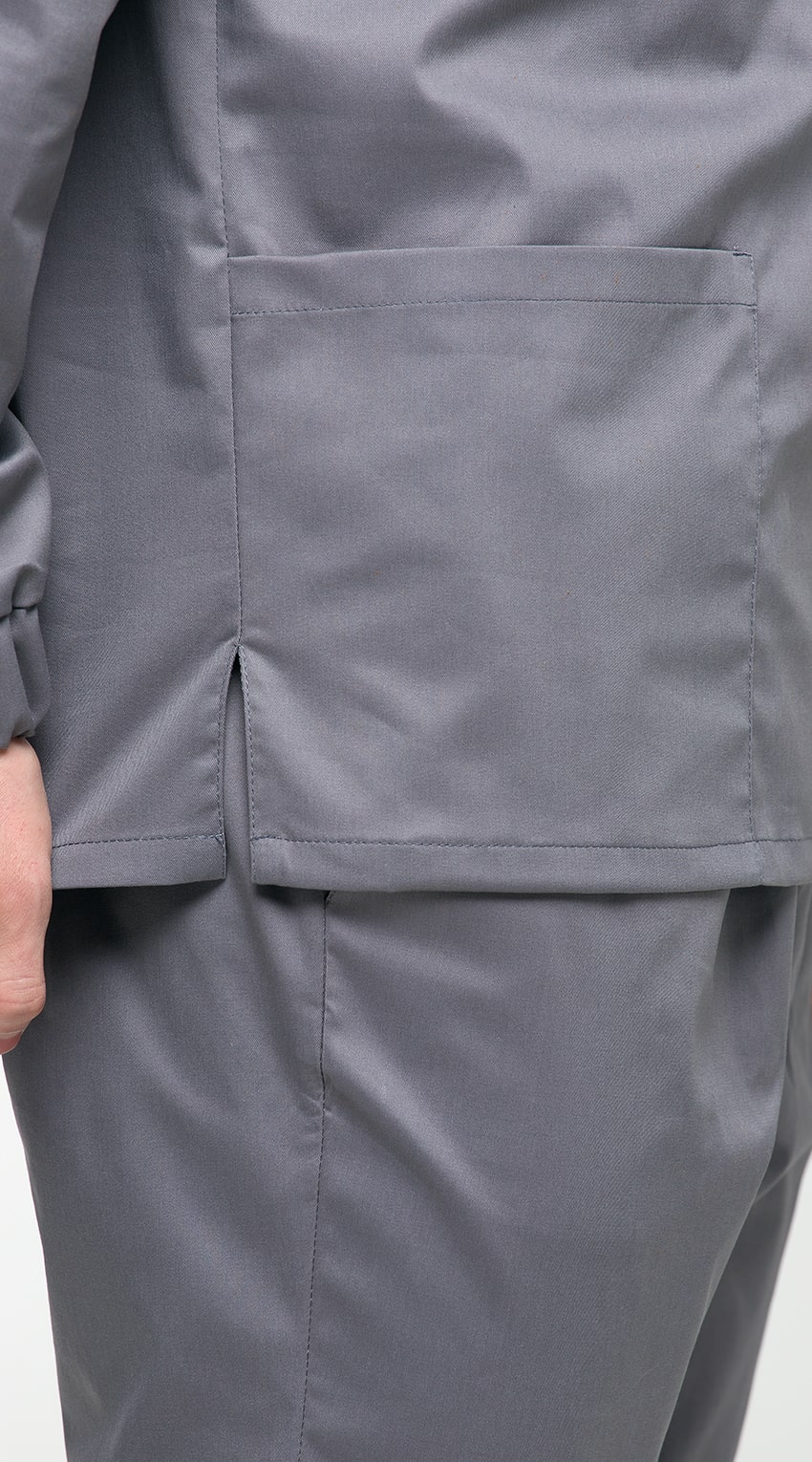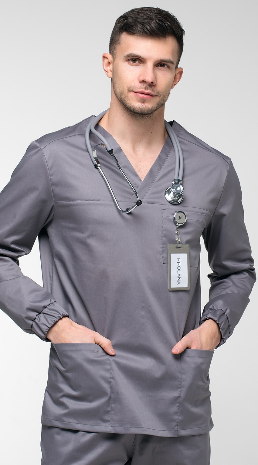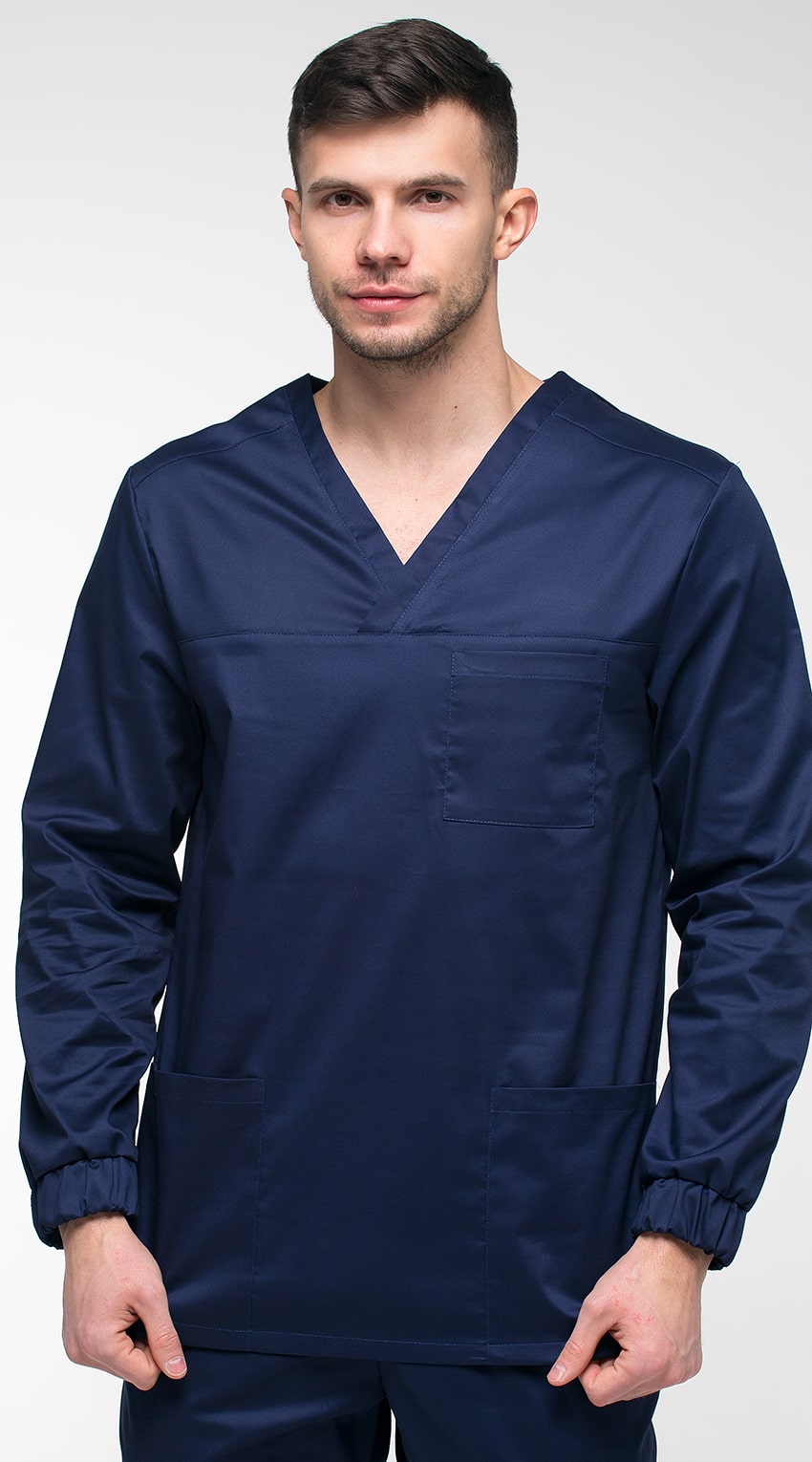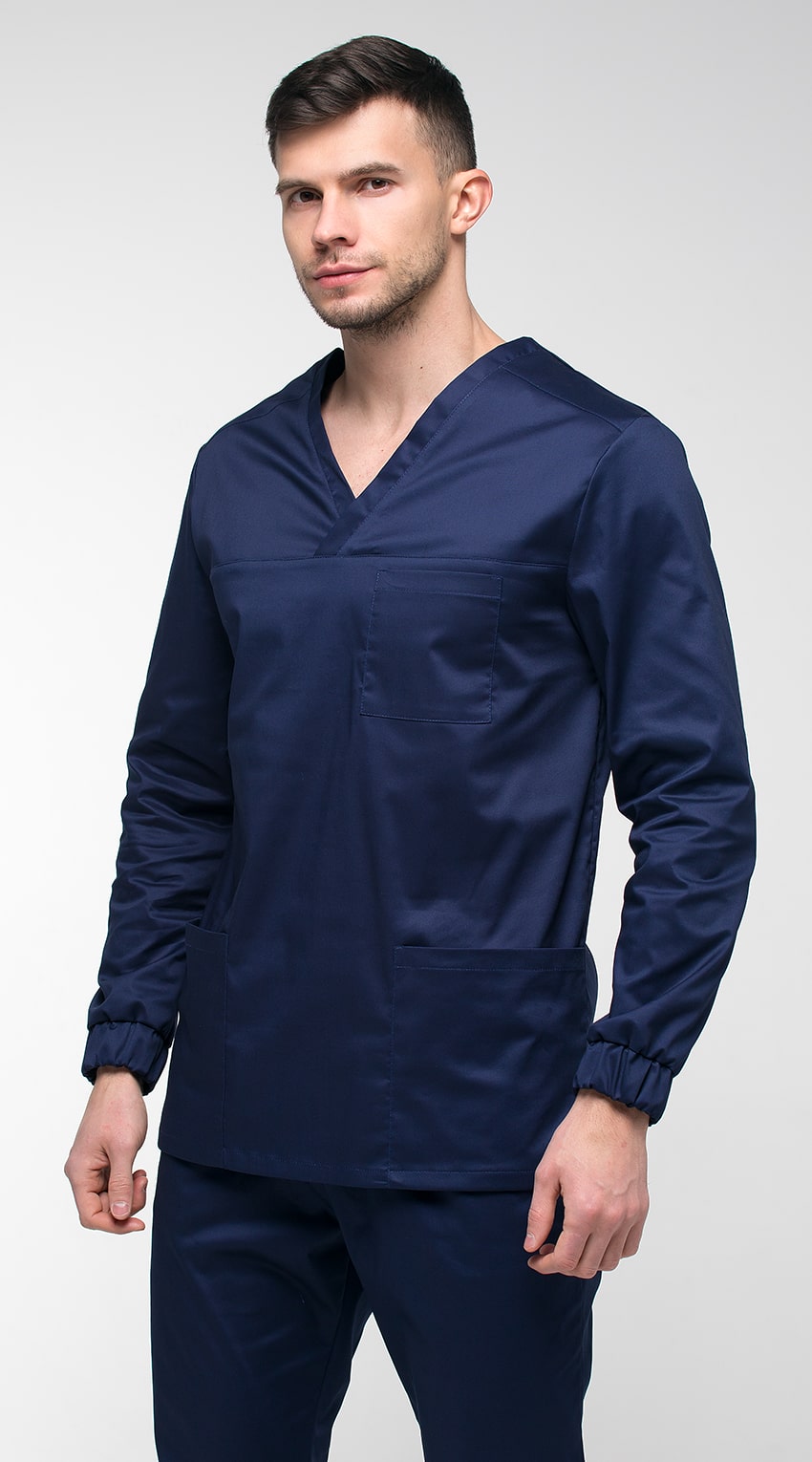 Костюм медицинский мужской состоит из куртки и брюк.Курта прямого силуэта с V-образным вырезом горловины, с разрезами в боковых швах.