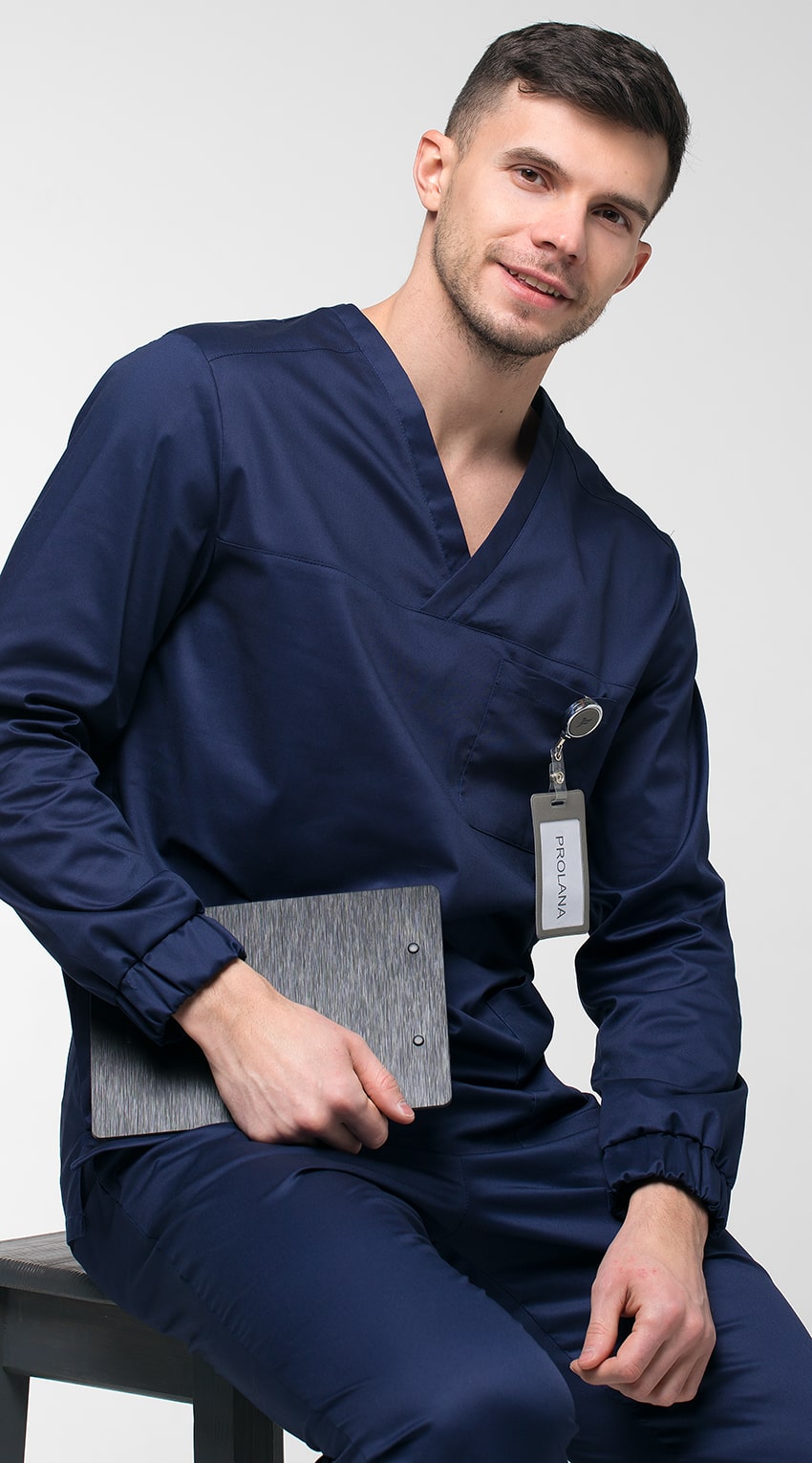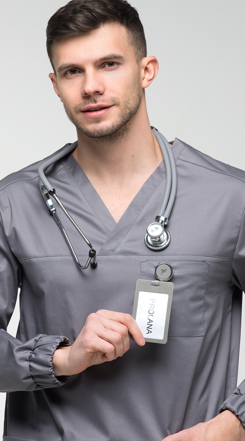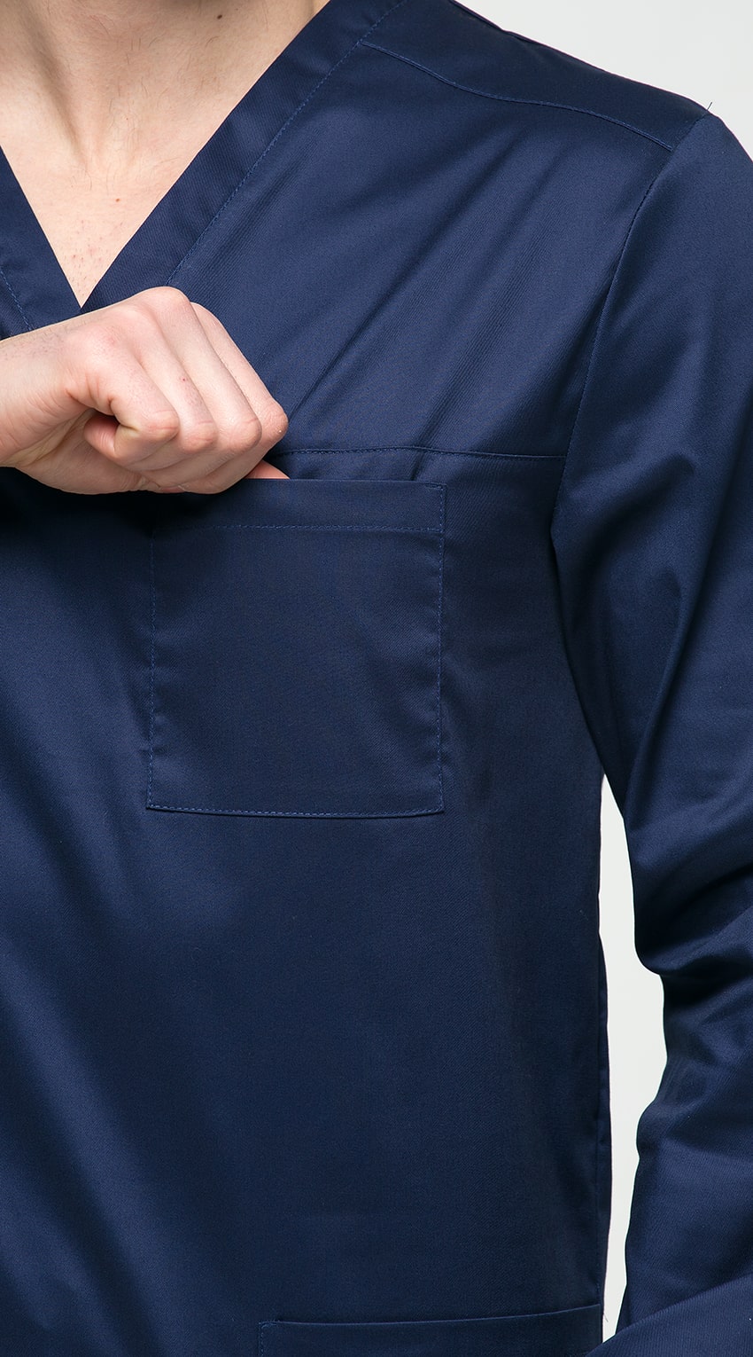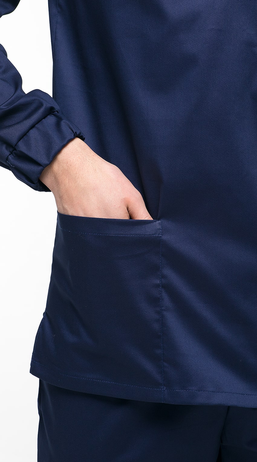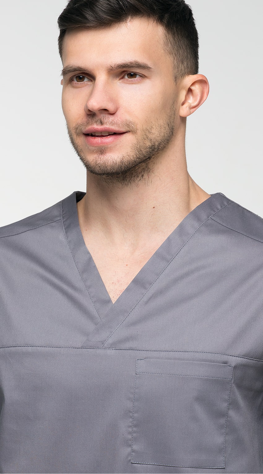 Костюм медицинский мужской состоит из куртки и брюк.Курта прямого силуэта с V-образным вырезом горловины, с разрезами в боковых швах.
