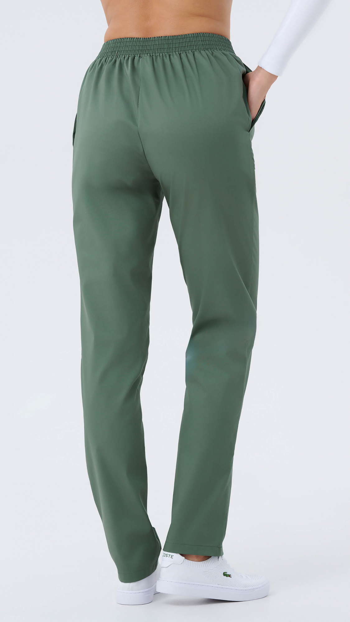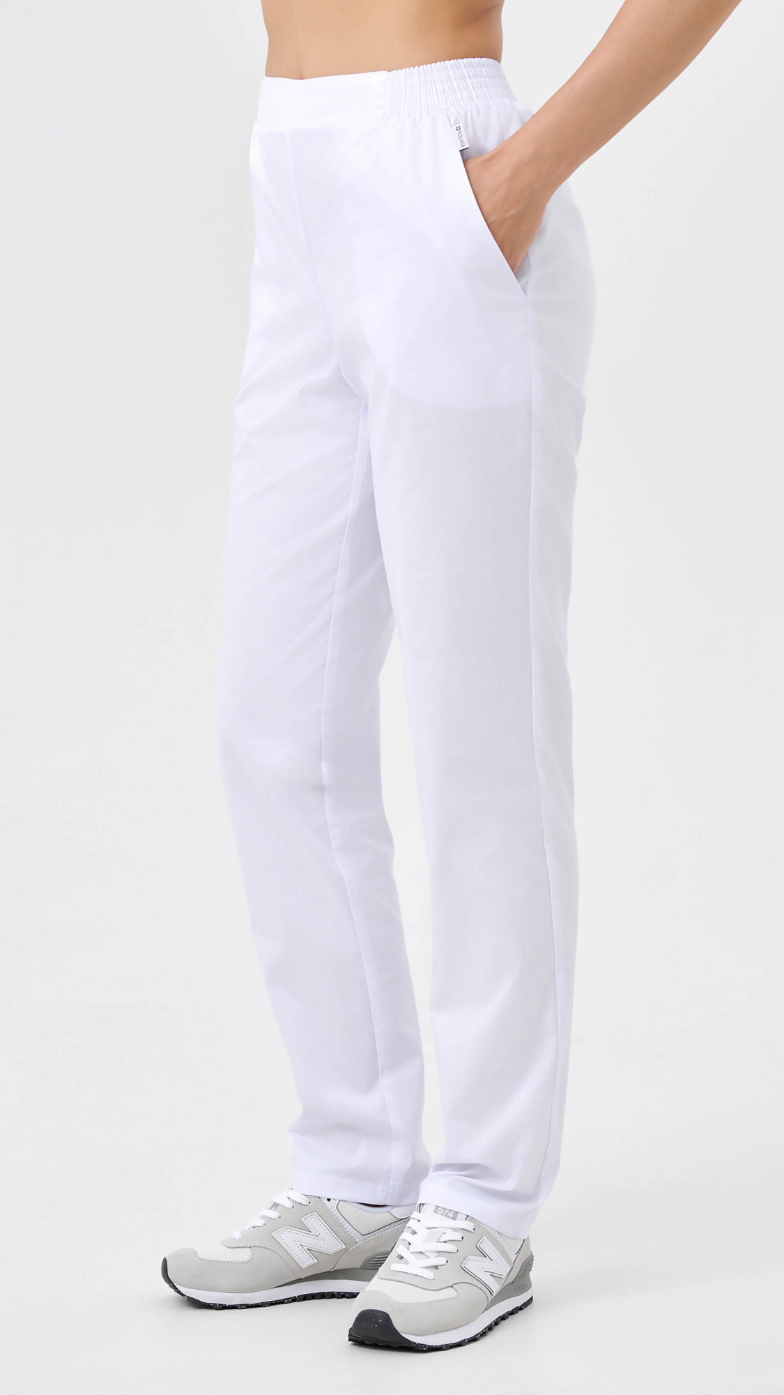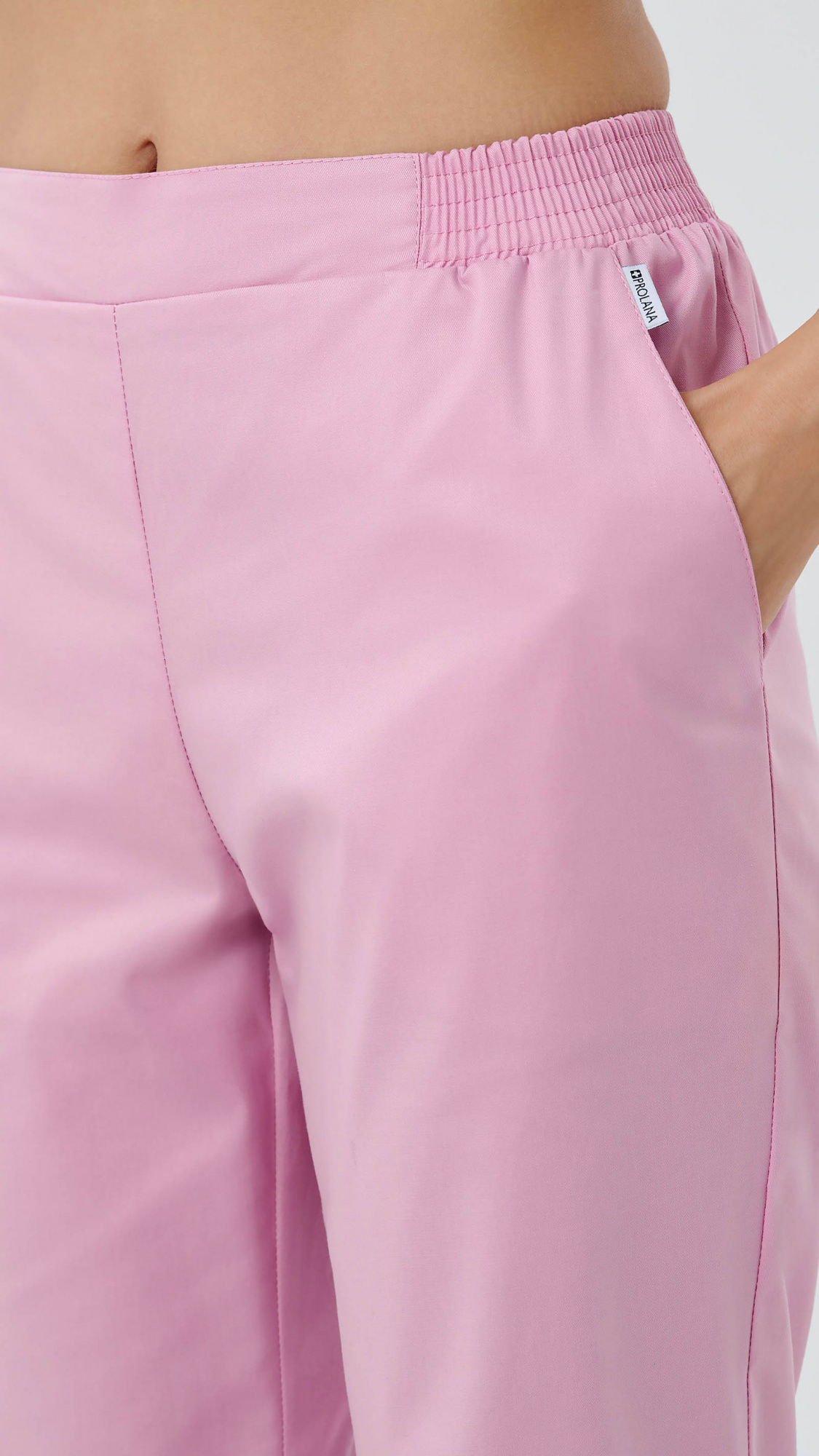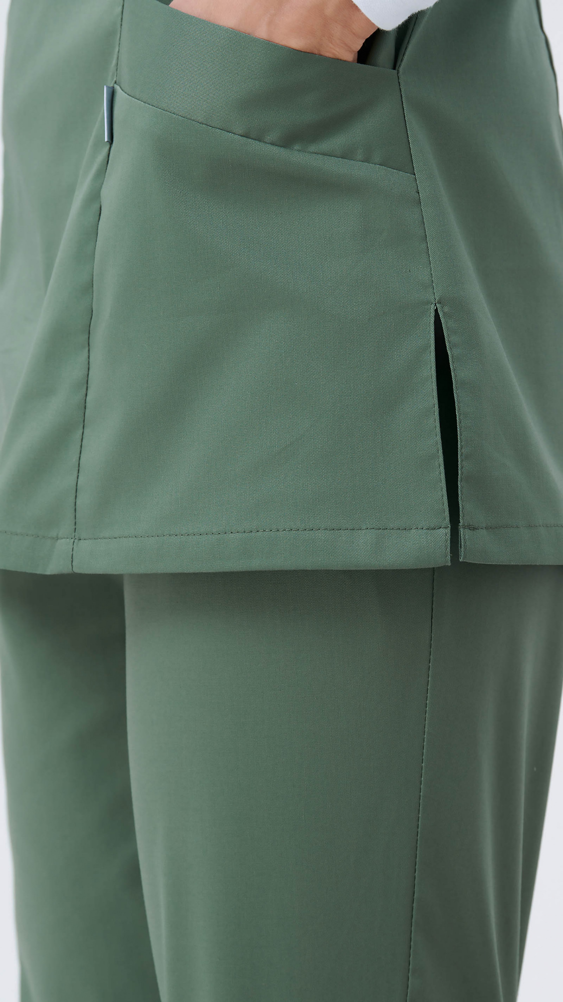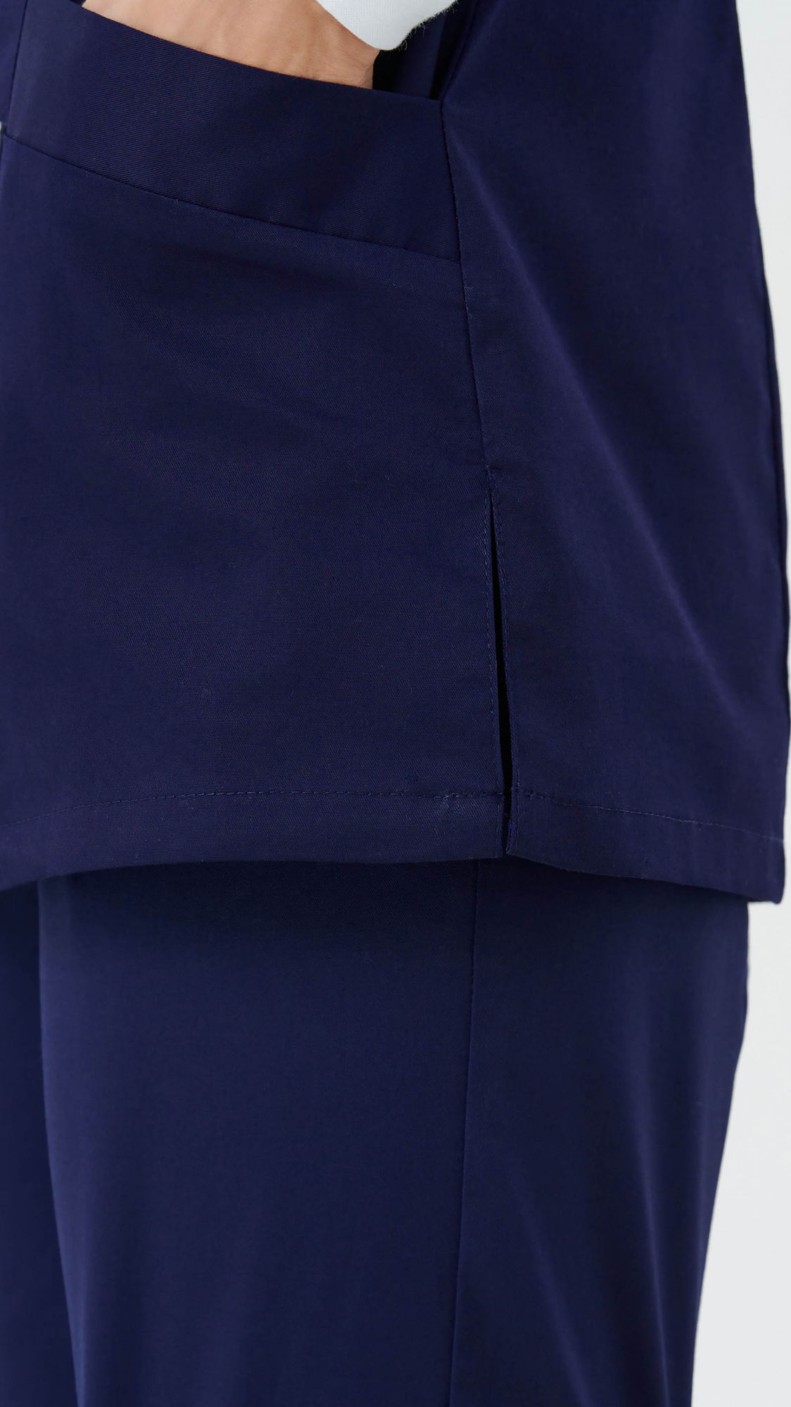 Костюм женский хирургический, состоит из блузы и брюк.Блуза полуприлегающего силуэта с V-образный вырезом горловины, с боковыми разрезами внизу.