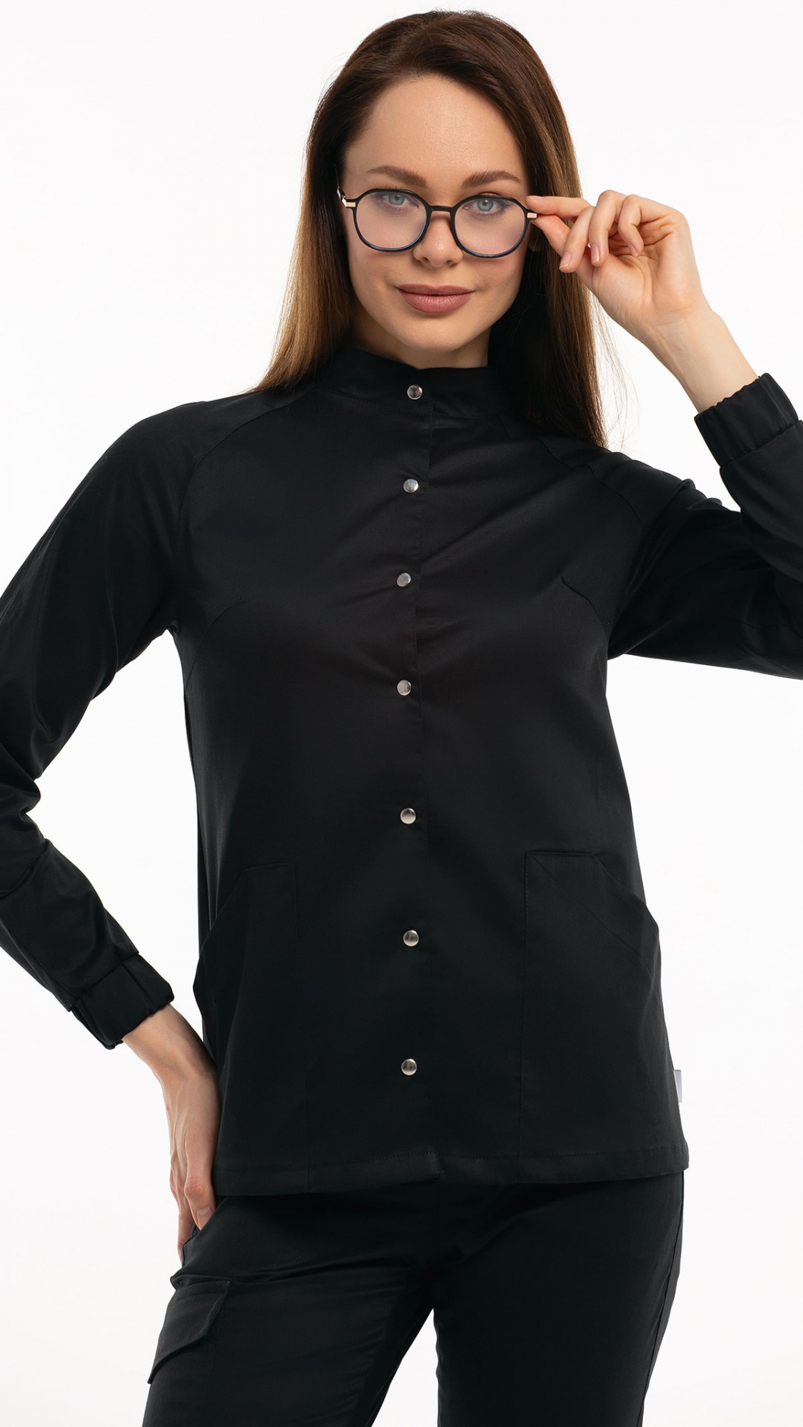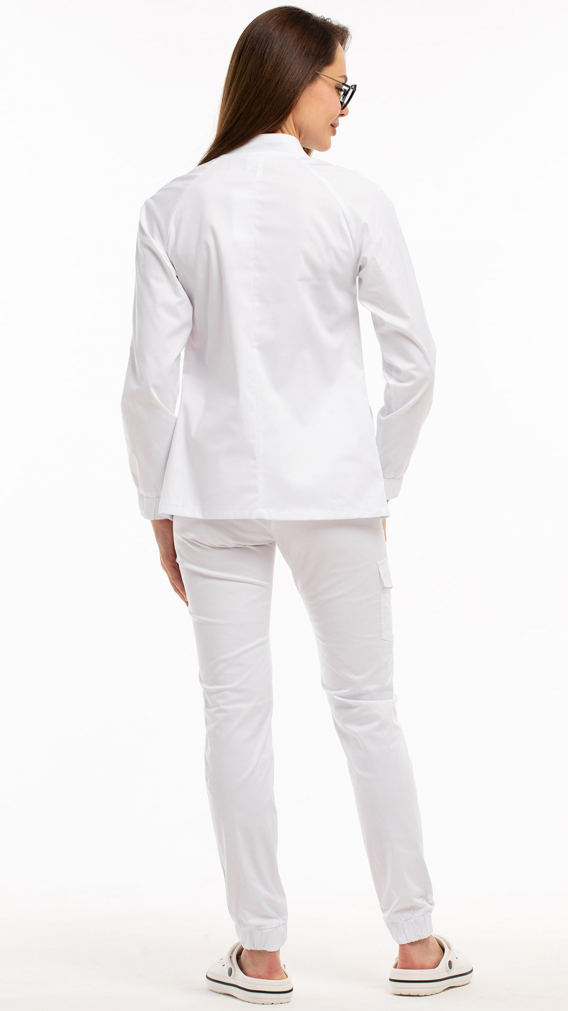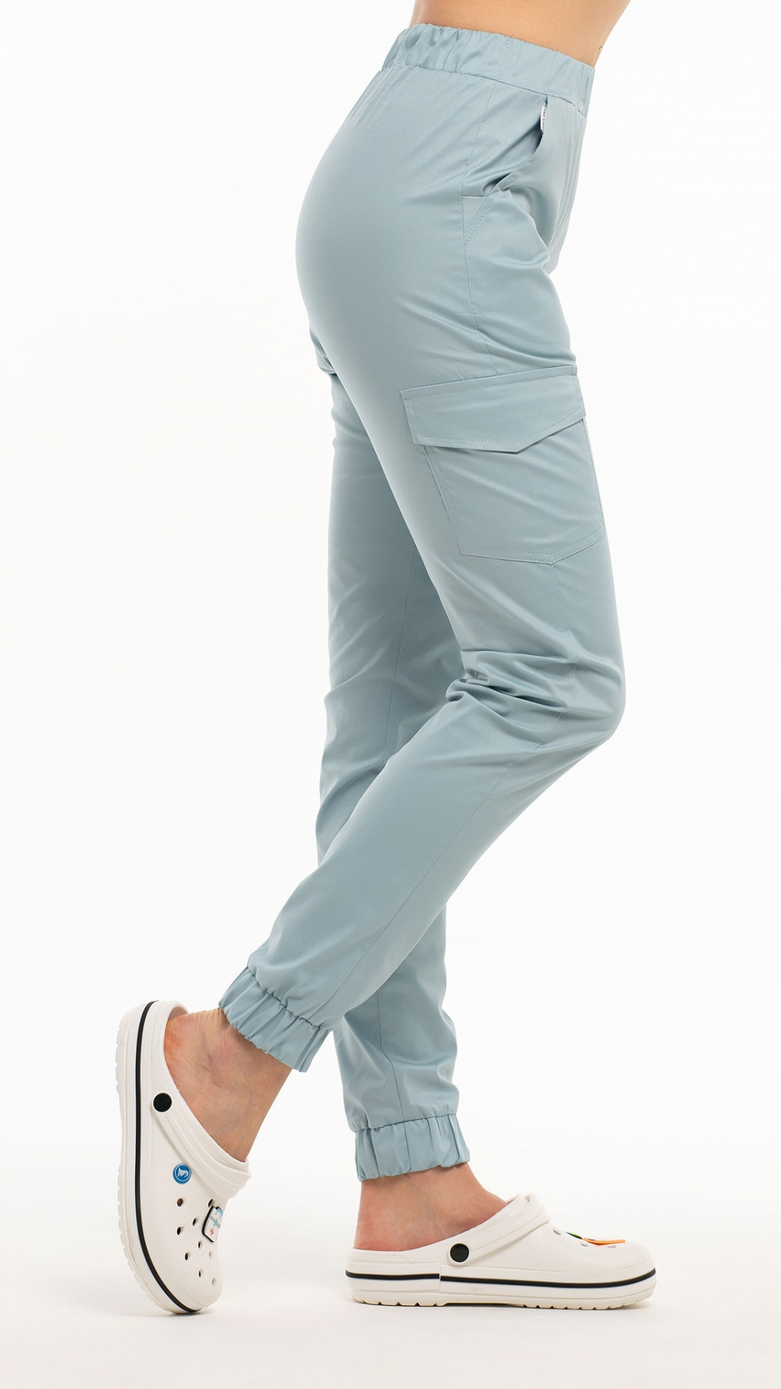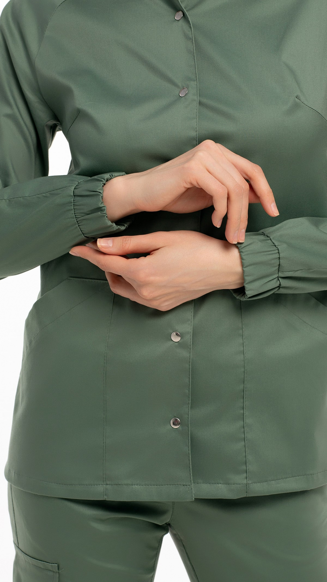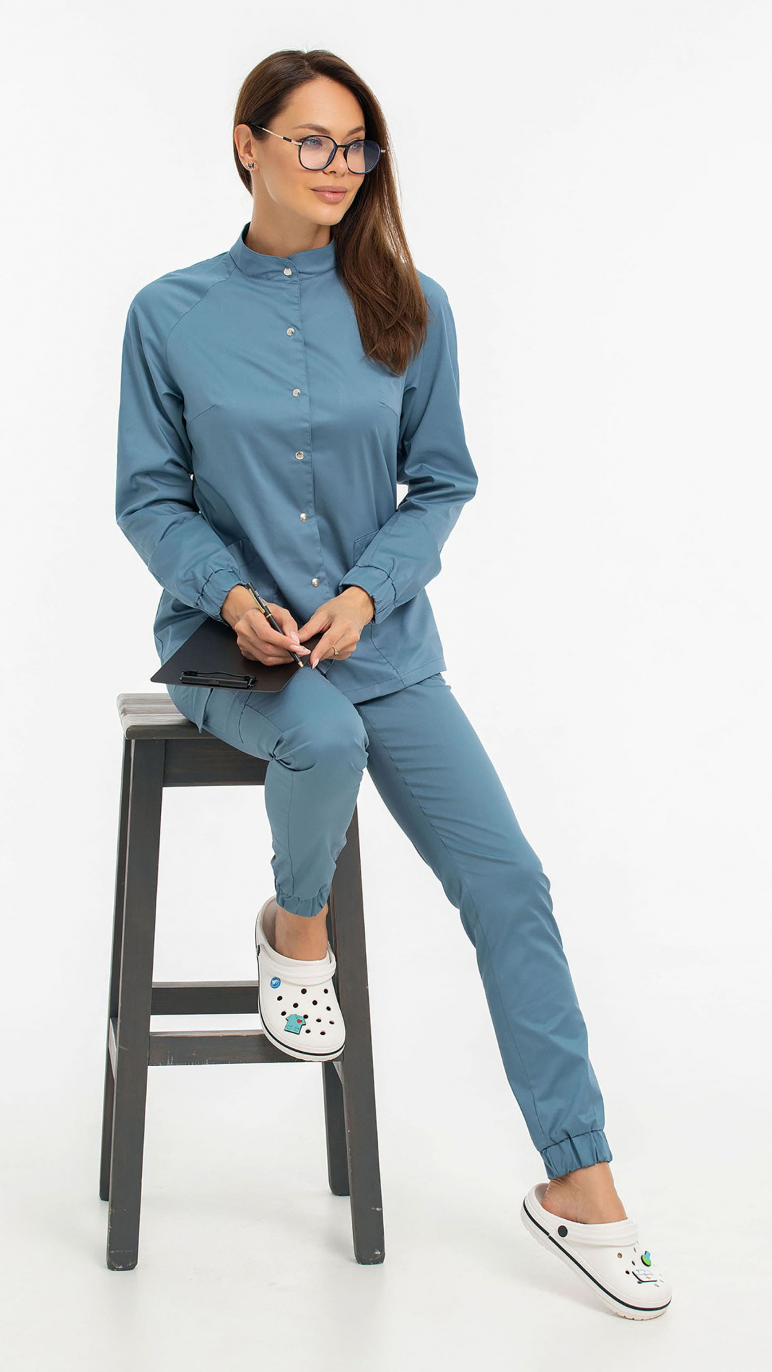 Костюм медицинский женский состоит из блузы и брюк.Блуза женская полуприлегающего силуэта с центральной бортовой застежкой на 6 кнопок.