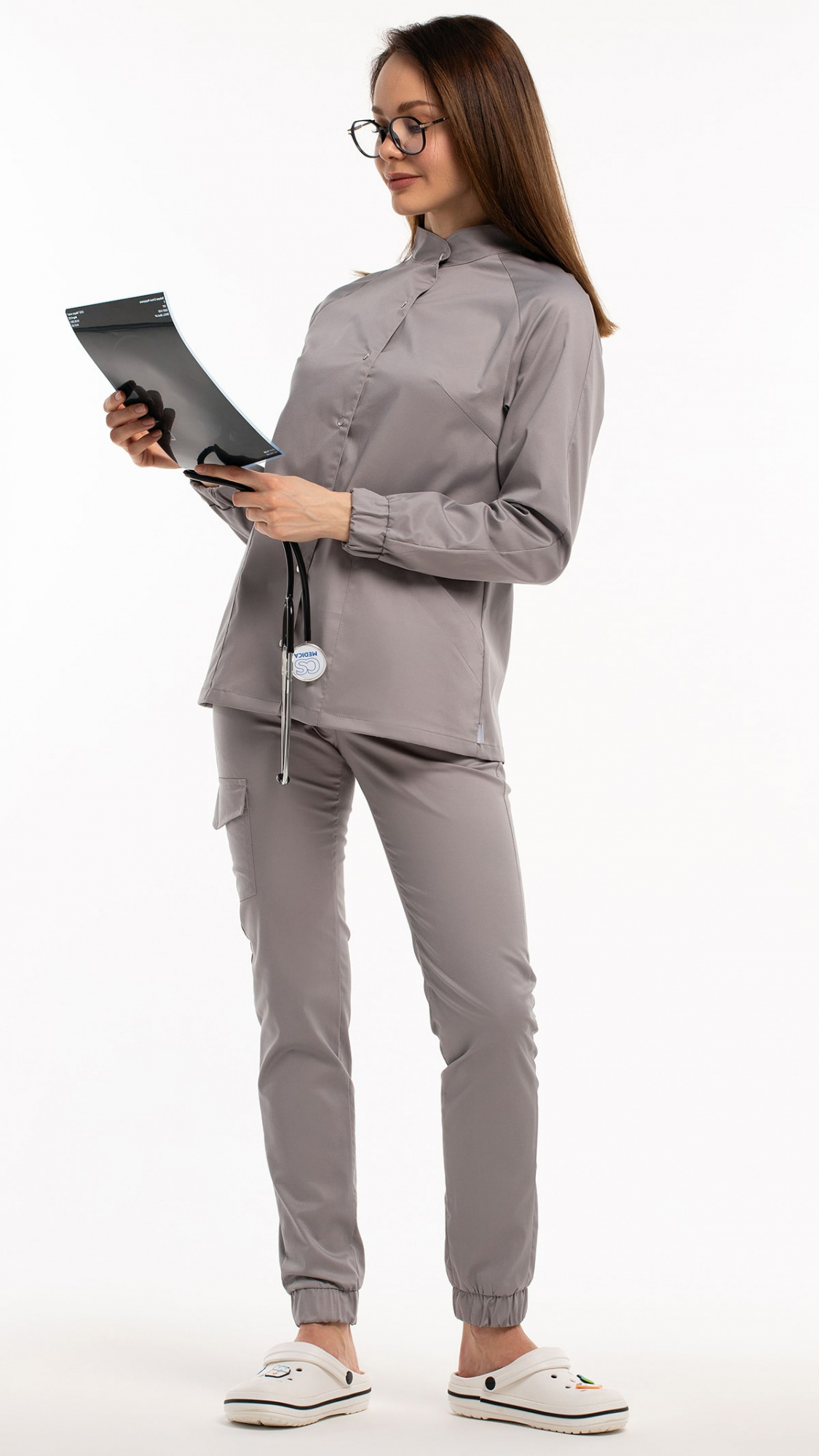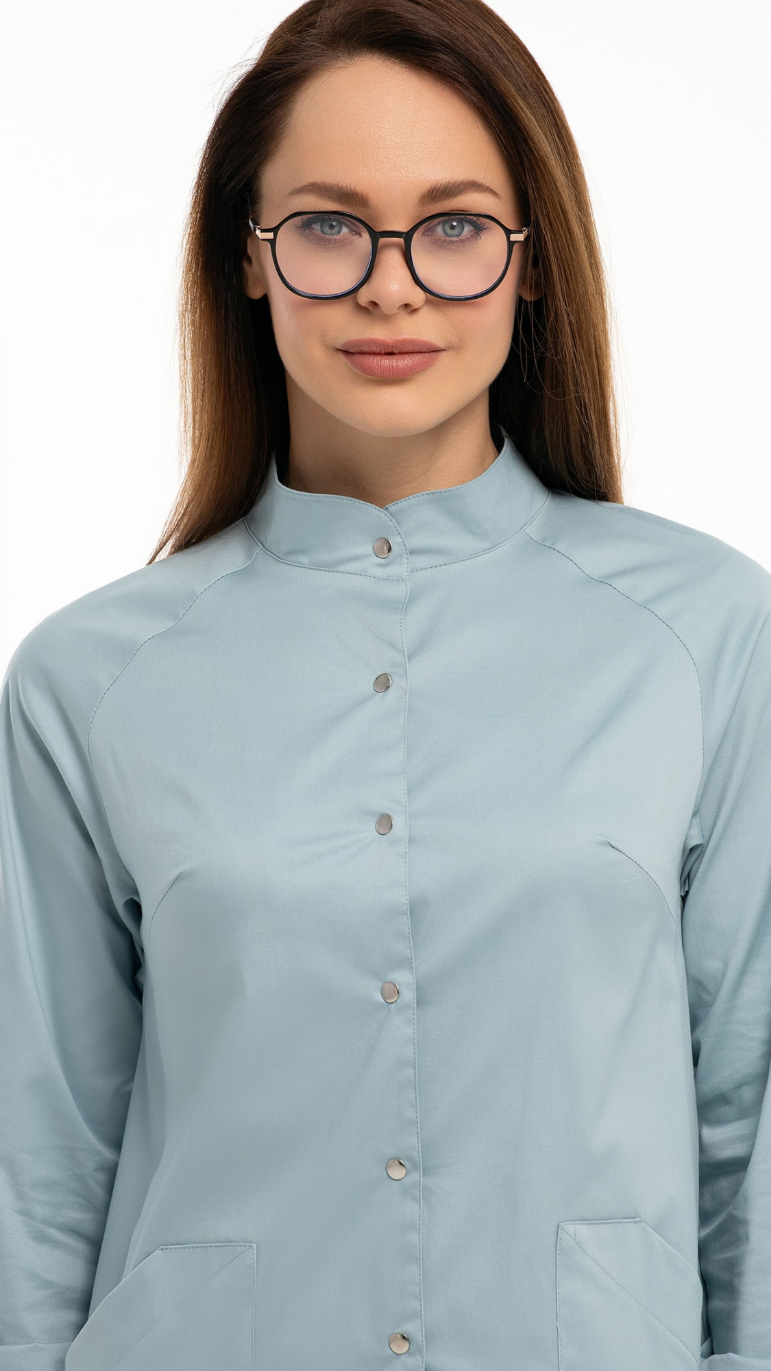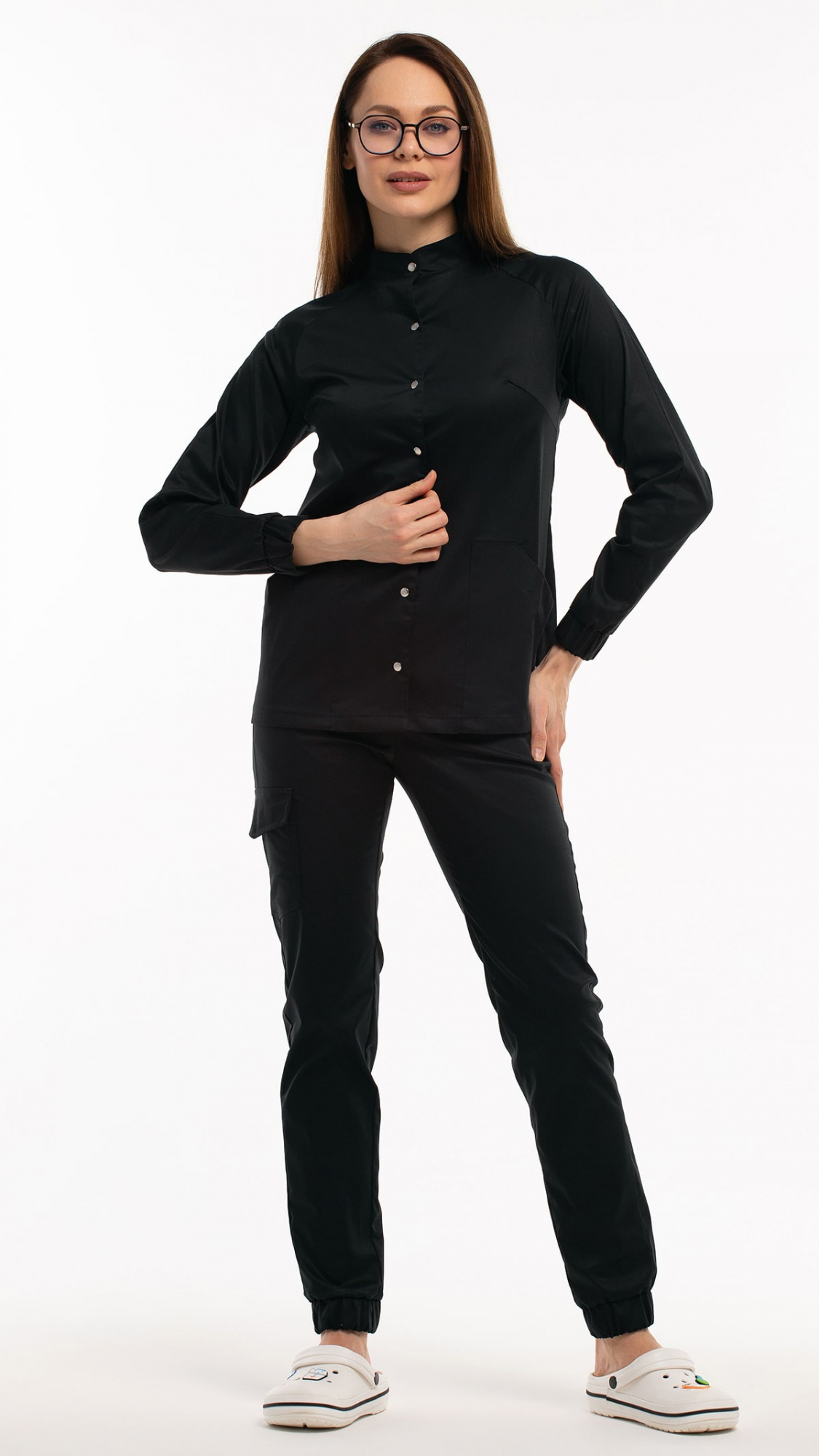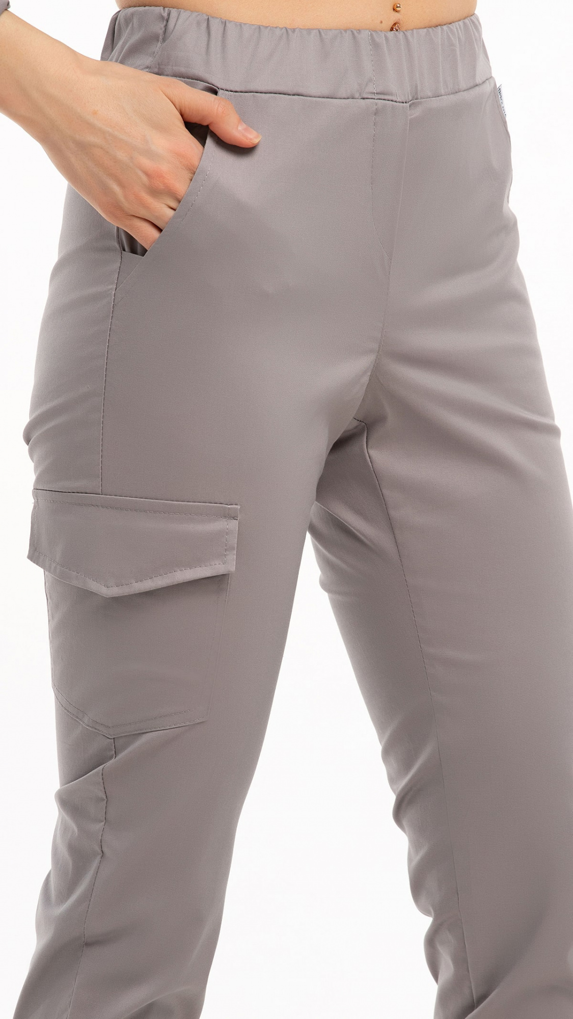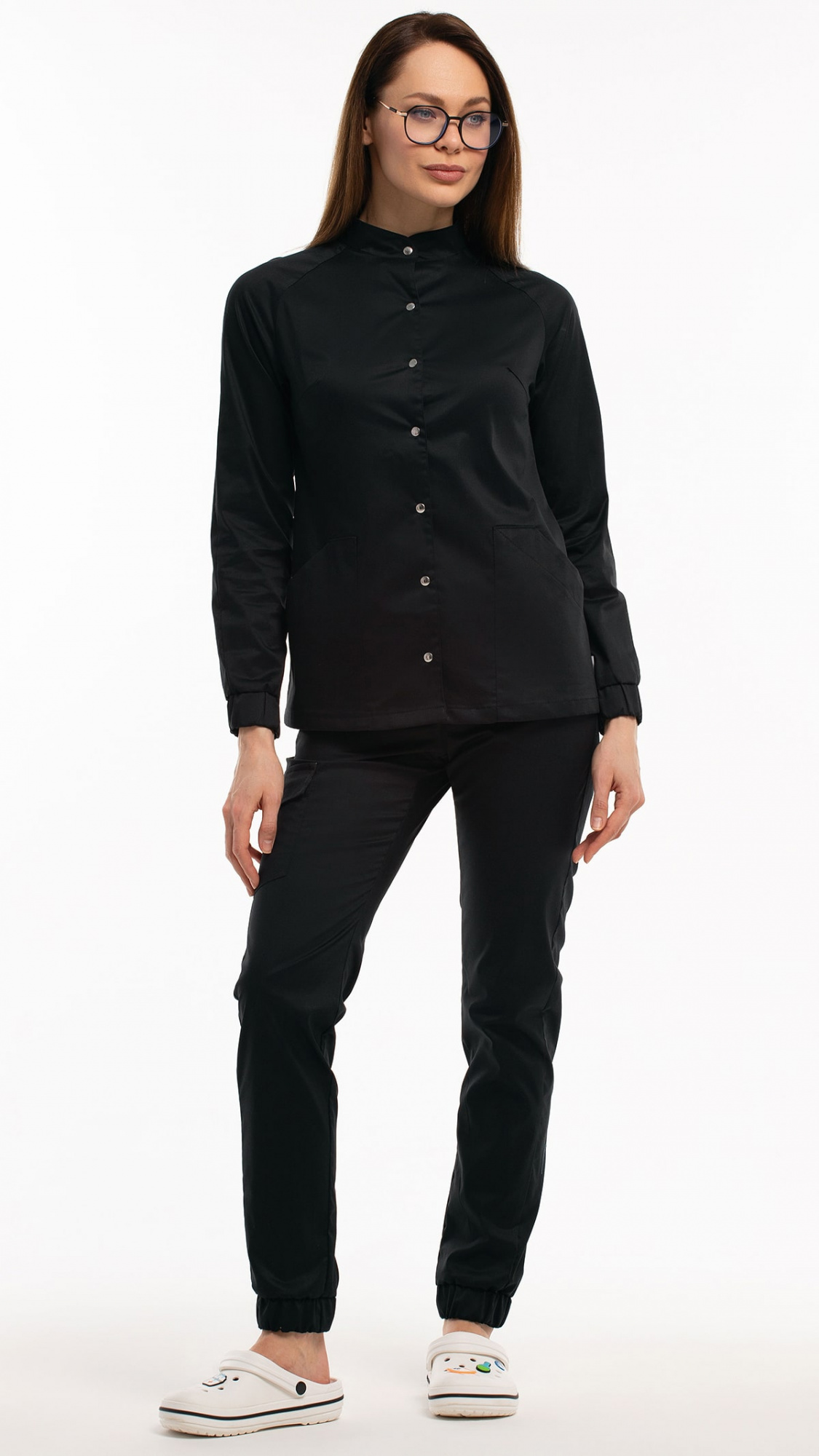 Костюм медицинский женский состоит из блузы и брюк.Блуза женская полуприлегающего силуэта с центральной бортовой застежкой на 6 кнопок.