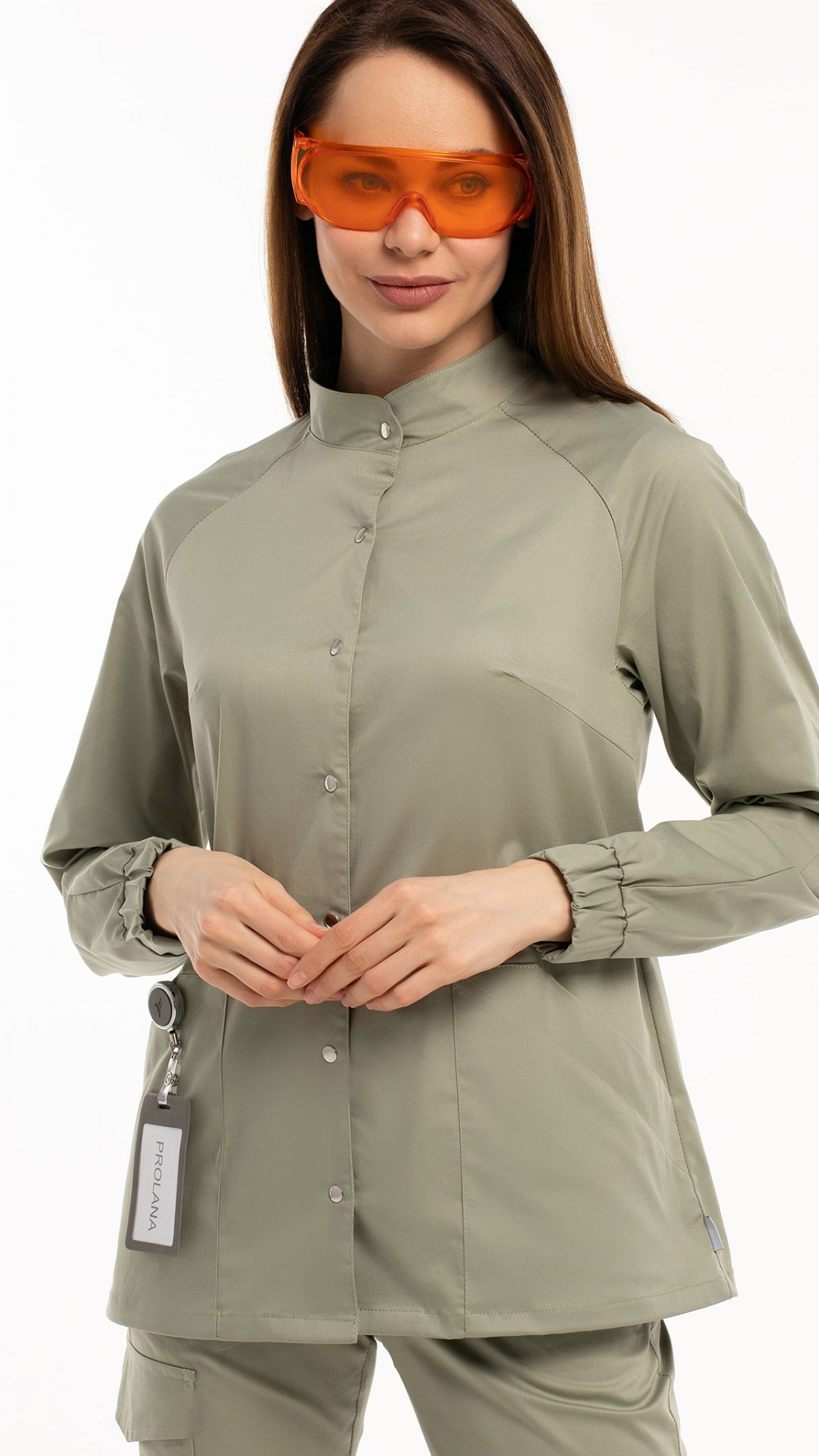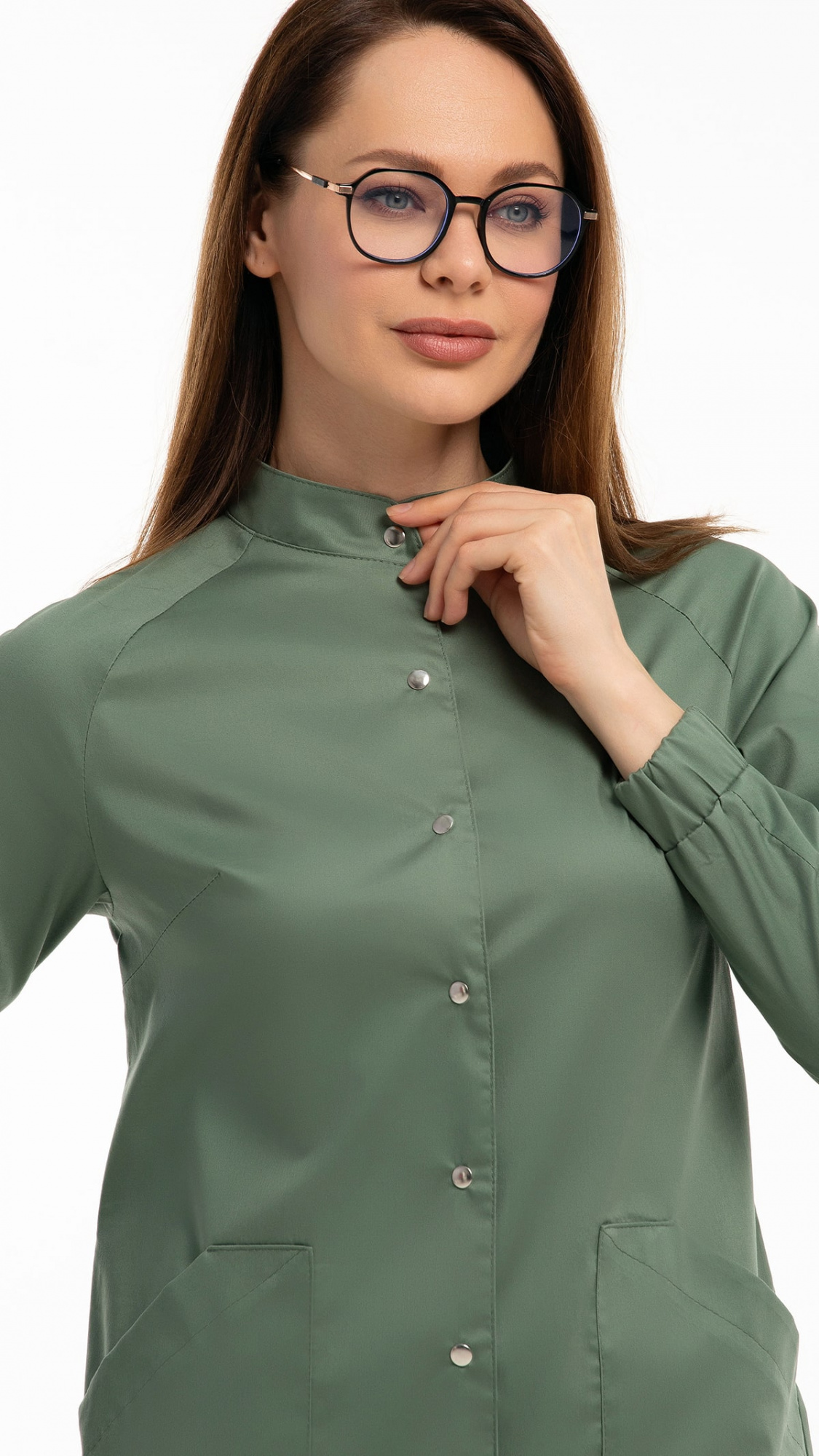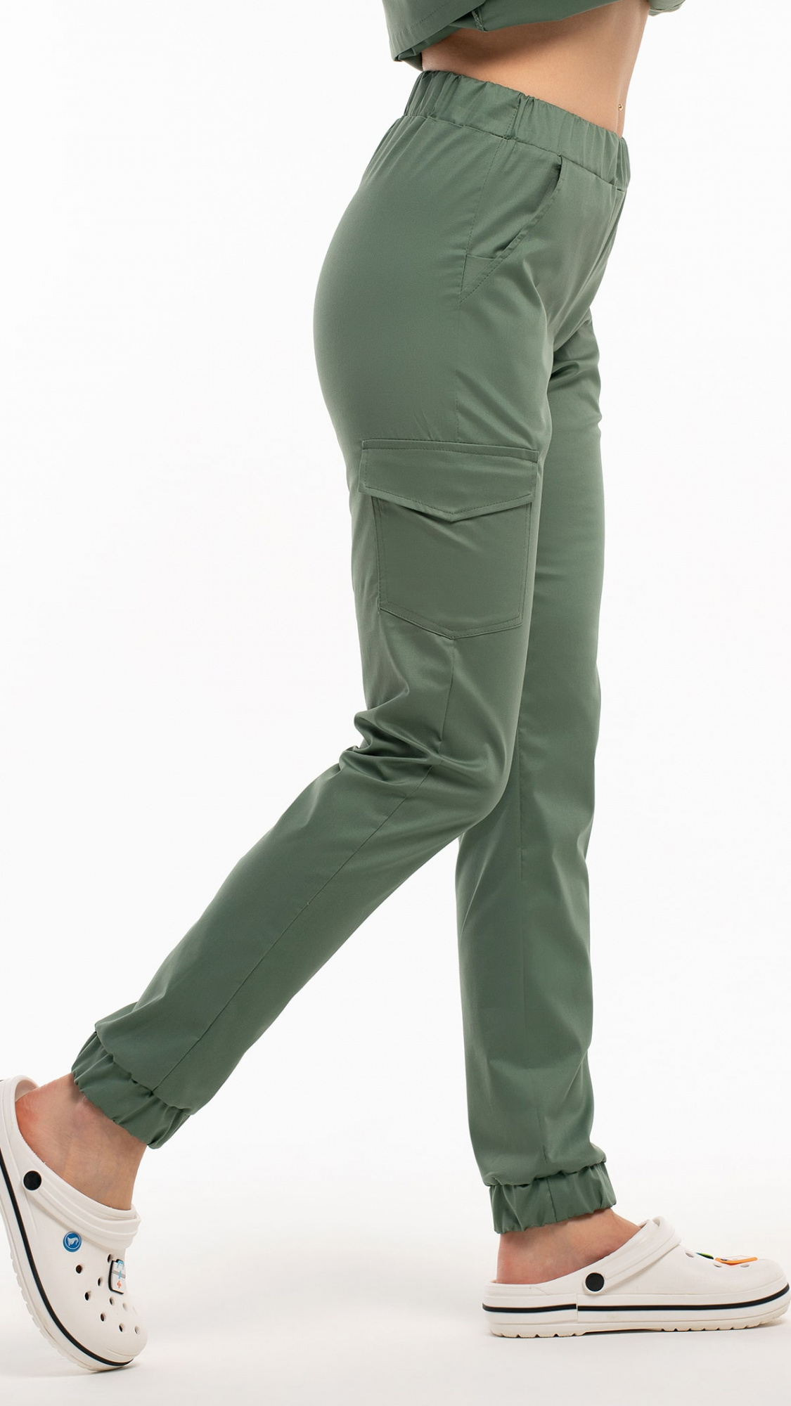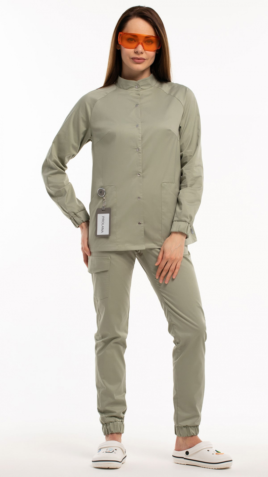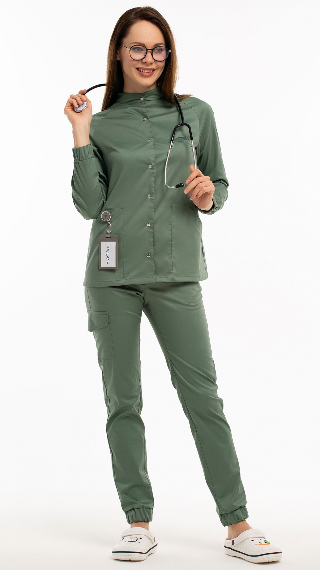 Костюм медицинский женский состоит из блузы и брюк.Блуза женская полуприлегающего силуэта с центральной бортовой застежкой на 6 кнопок.