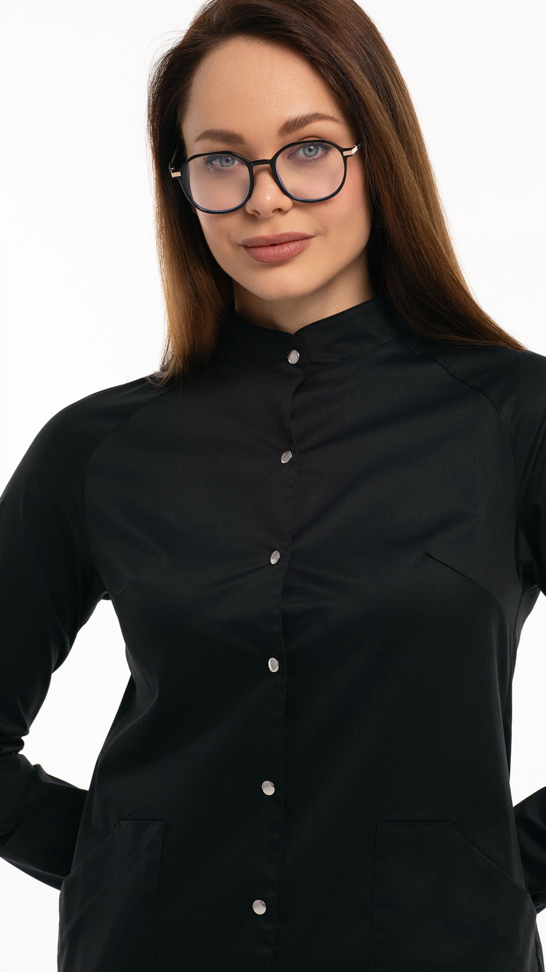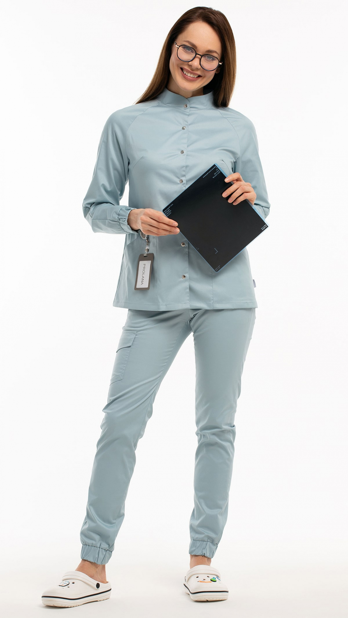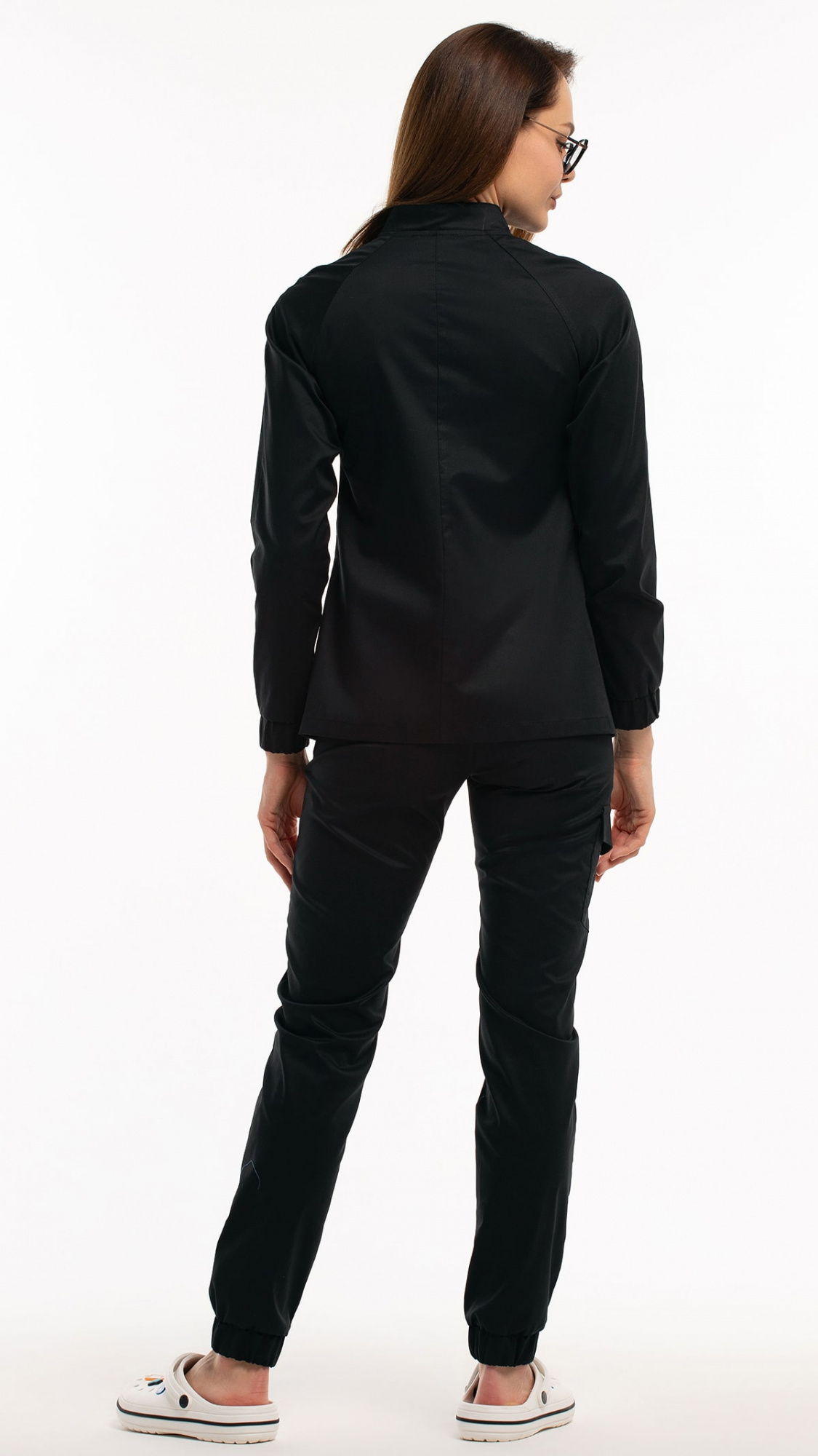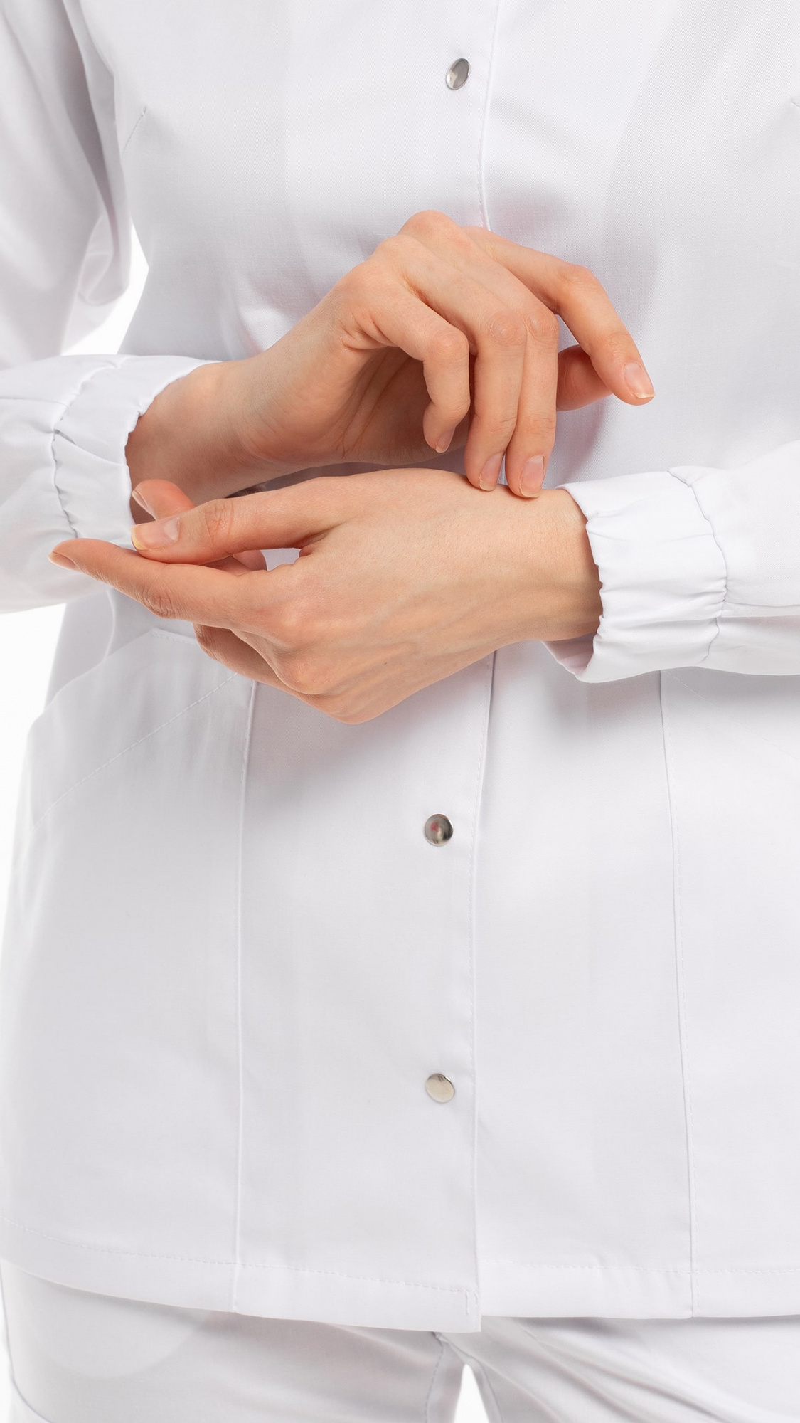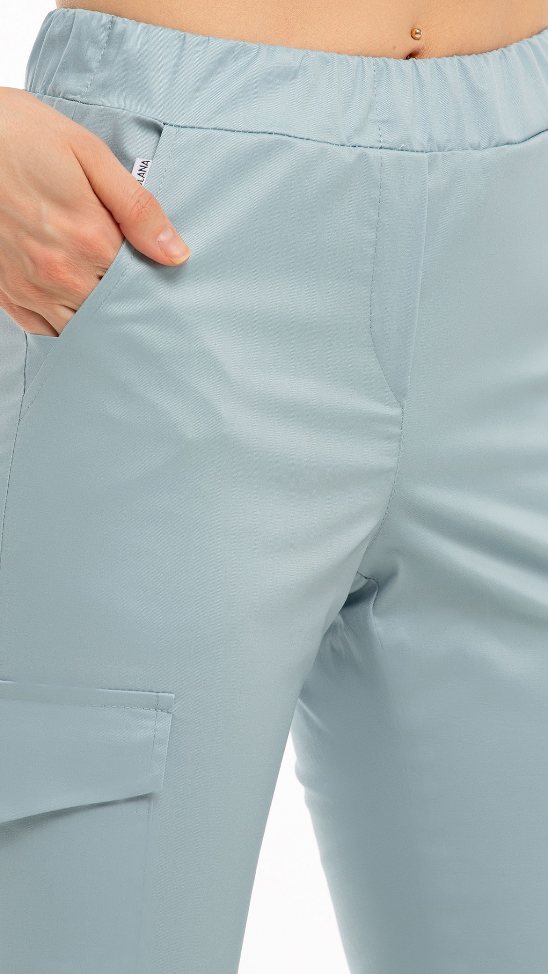 Костюм медицинский женский состоит из блузы и брюк.Блуза женская полуприлегающего силуэта с центральной бортовой застежкой на 6 кнопок.