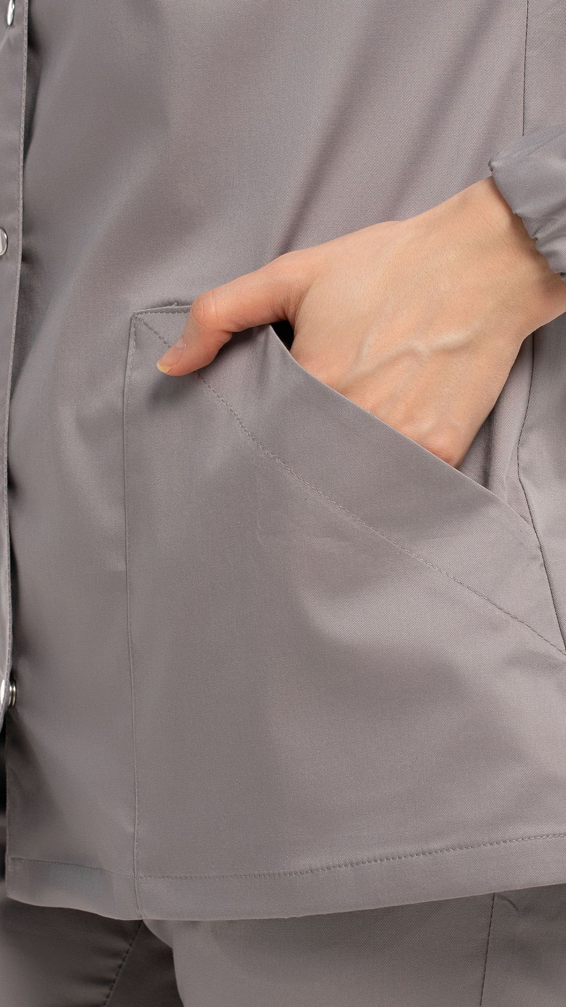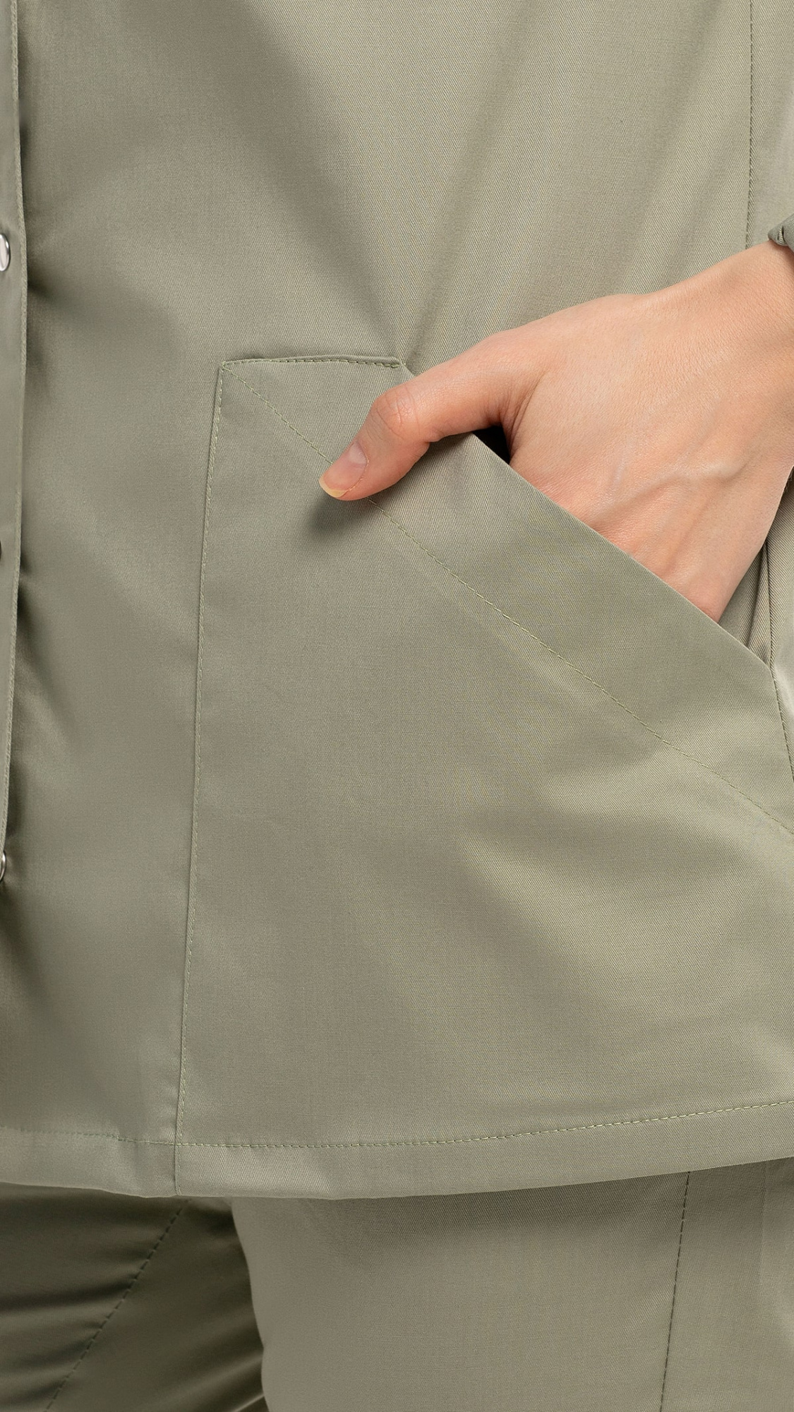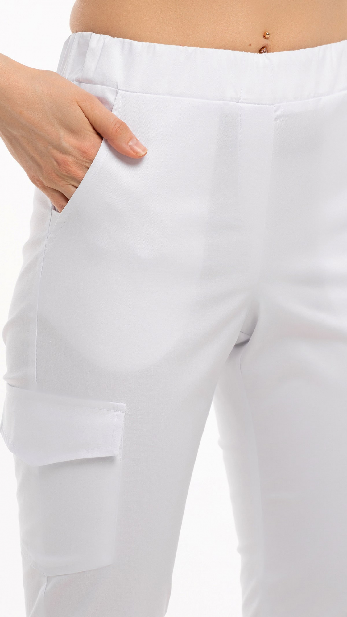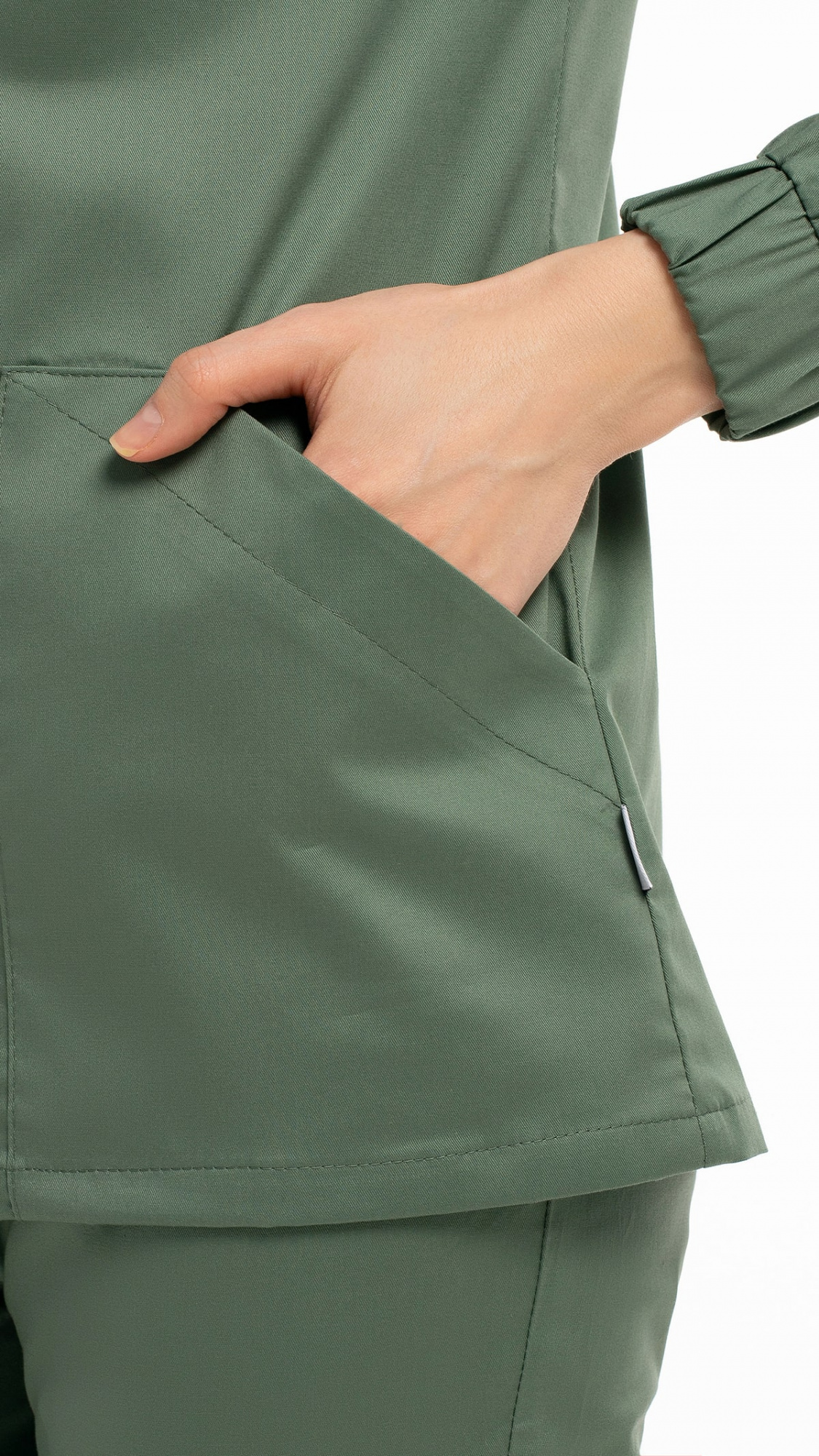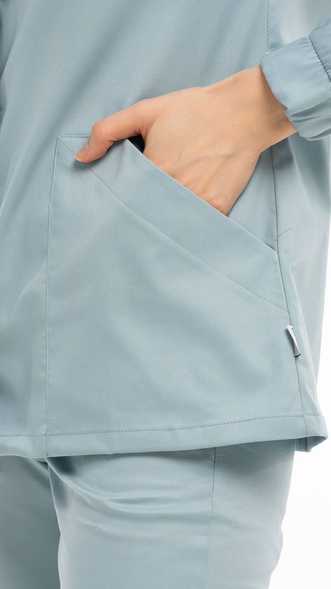 Костюм медицинский женский состоит из блузы и брюк.Блуза женская полуприлегающего силуэта с центральной бортовой застежкой на 6 кнопок.