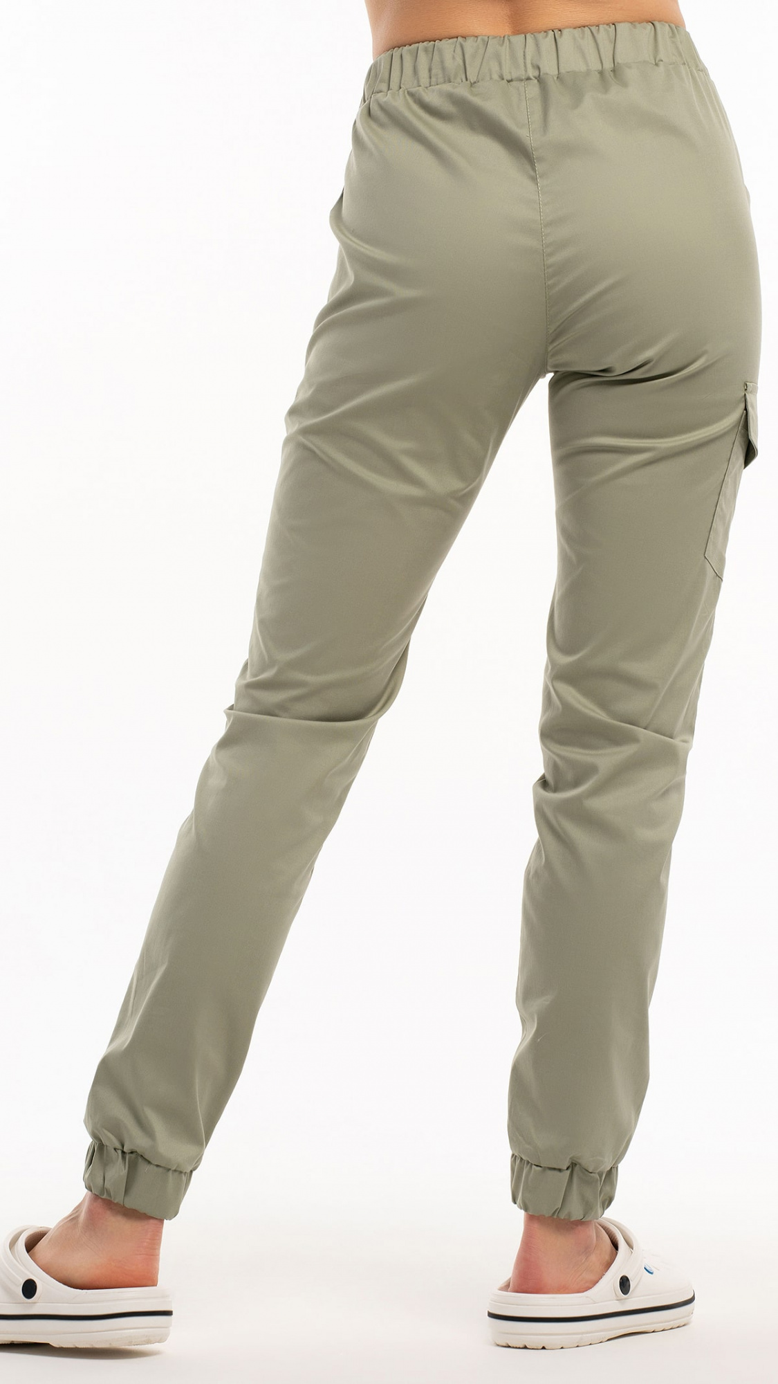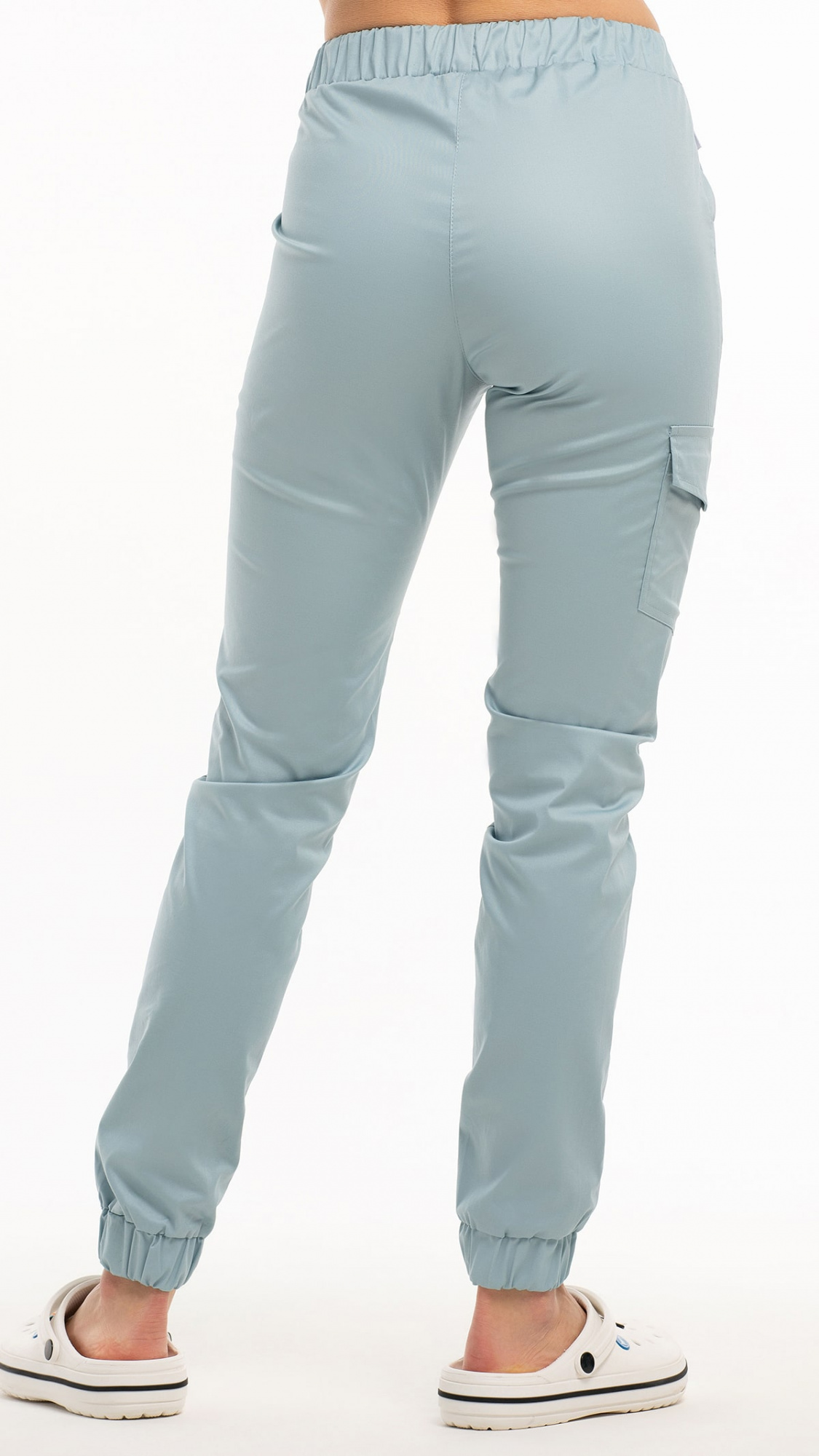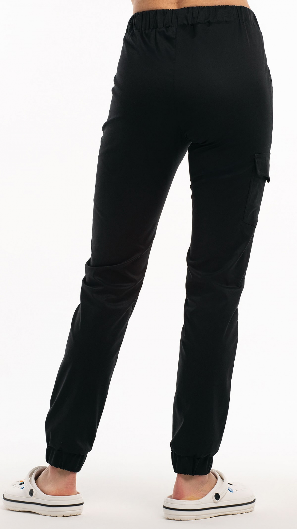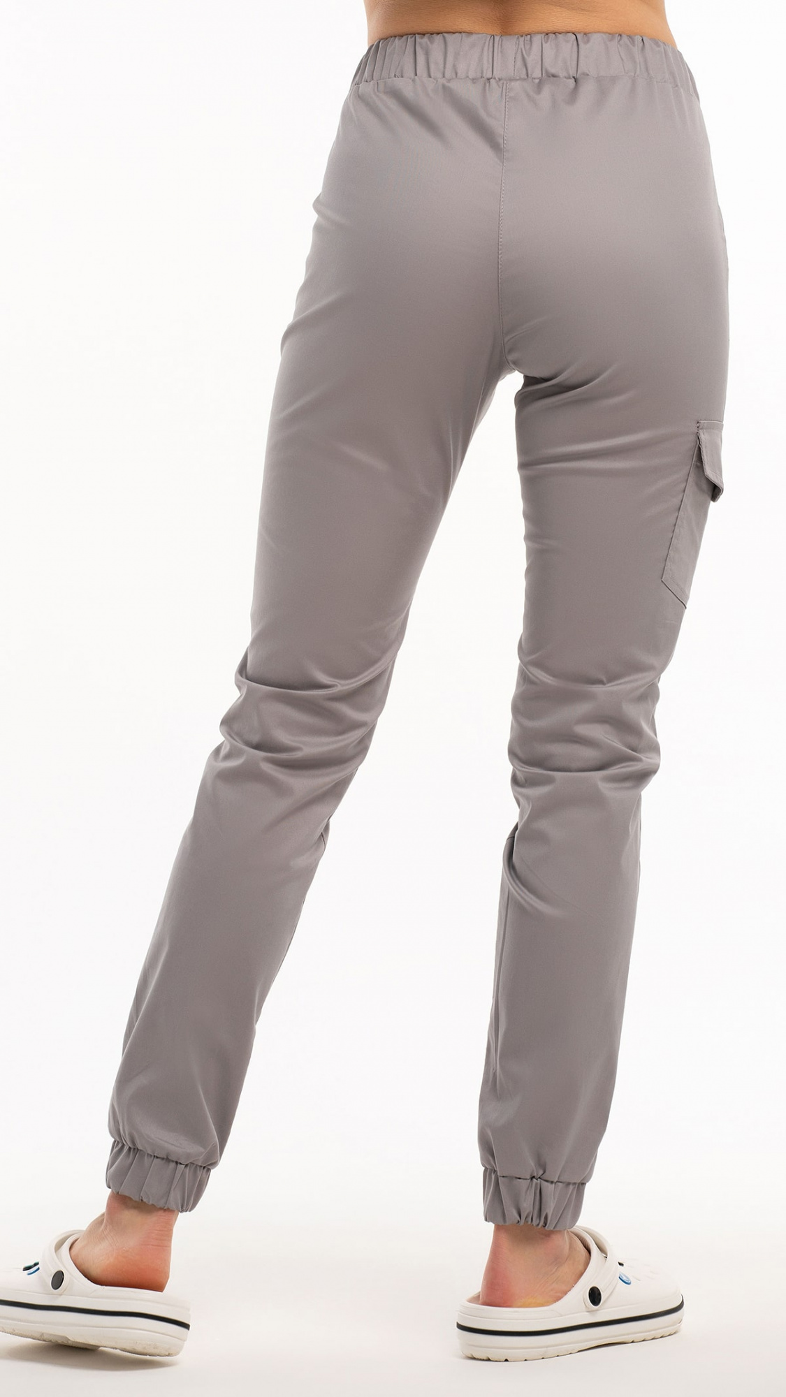 Низ брюк обработан притачными манжетами с эластичной тесьмой внутри.