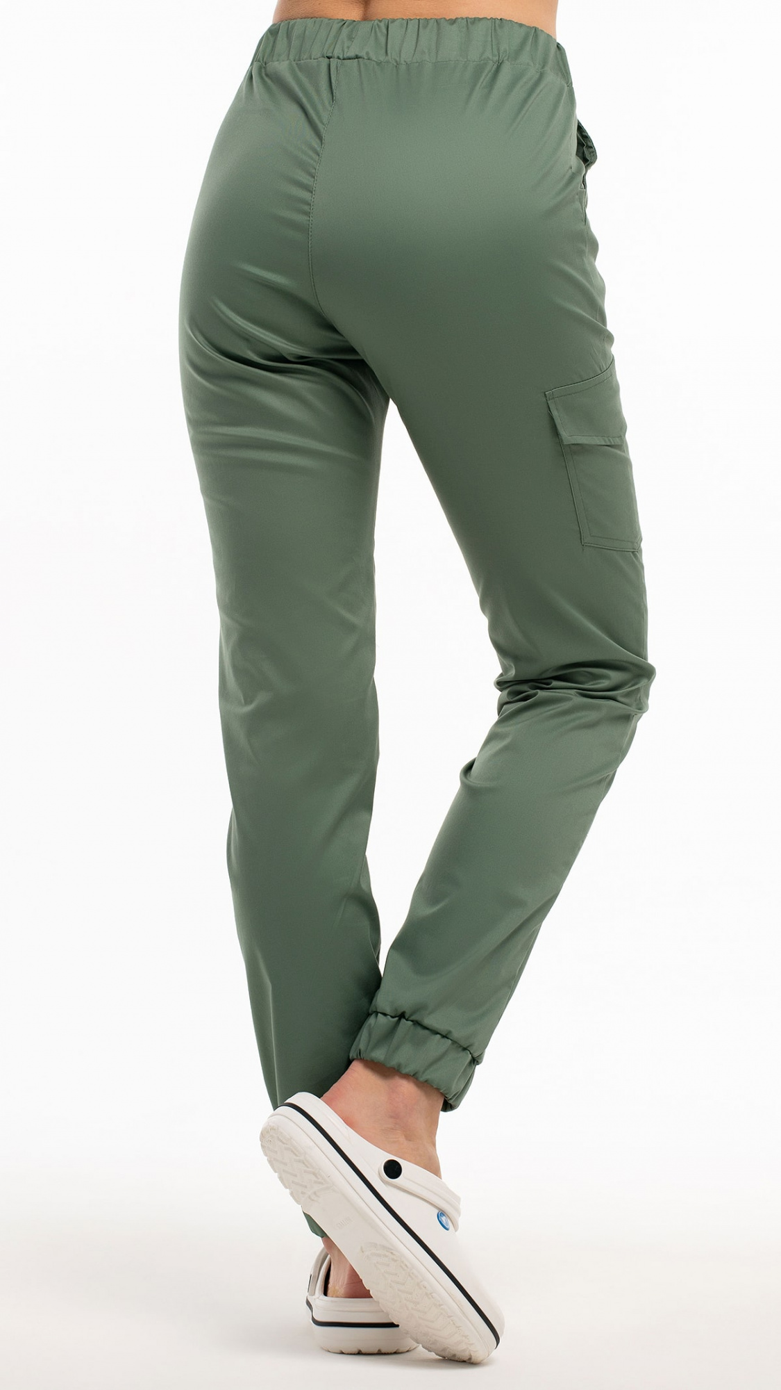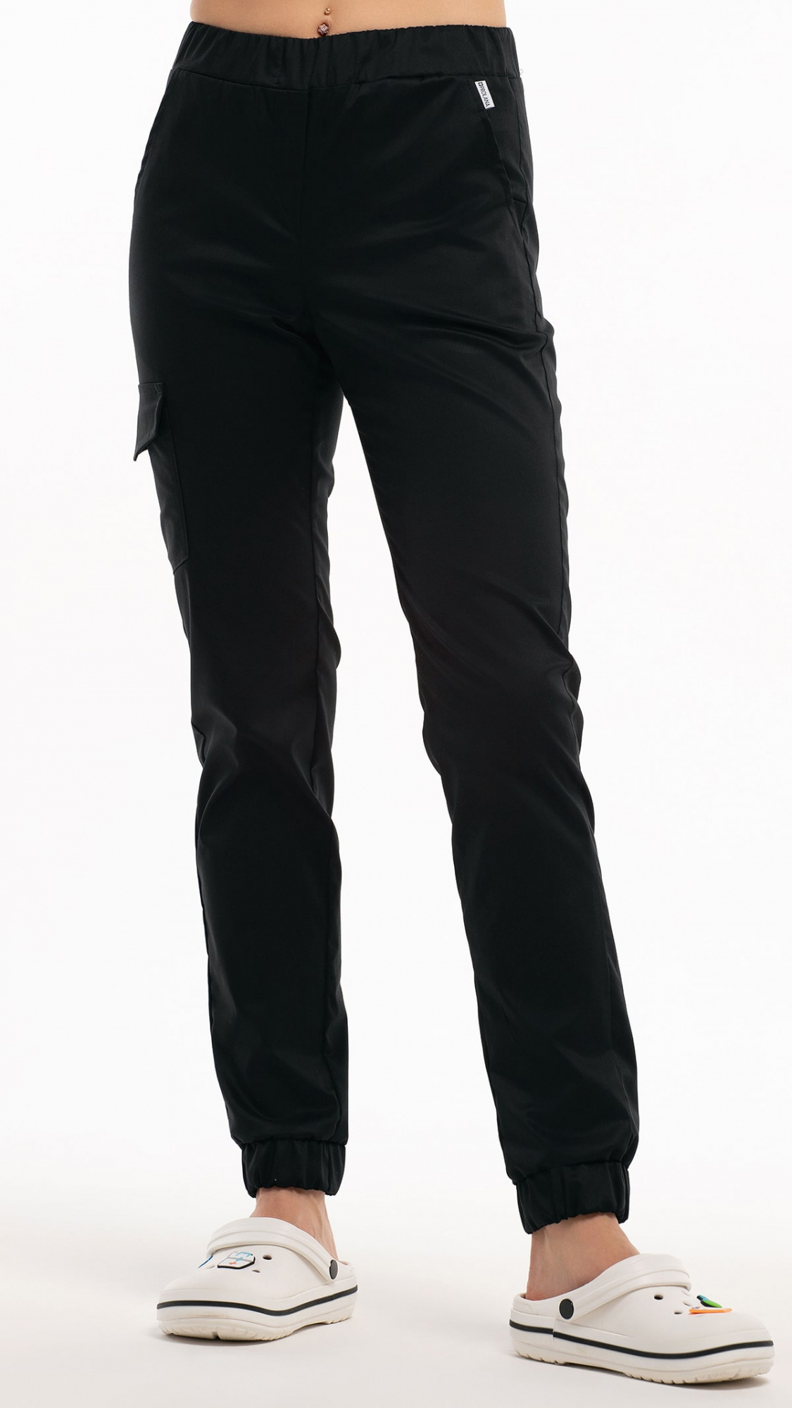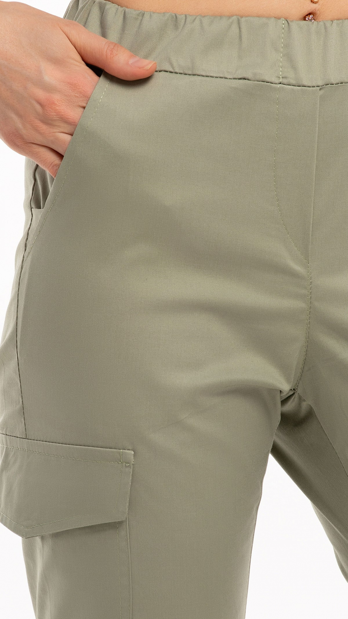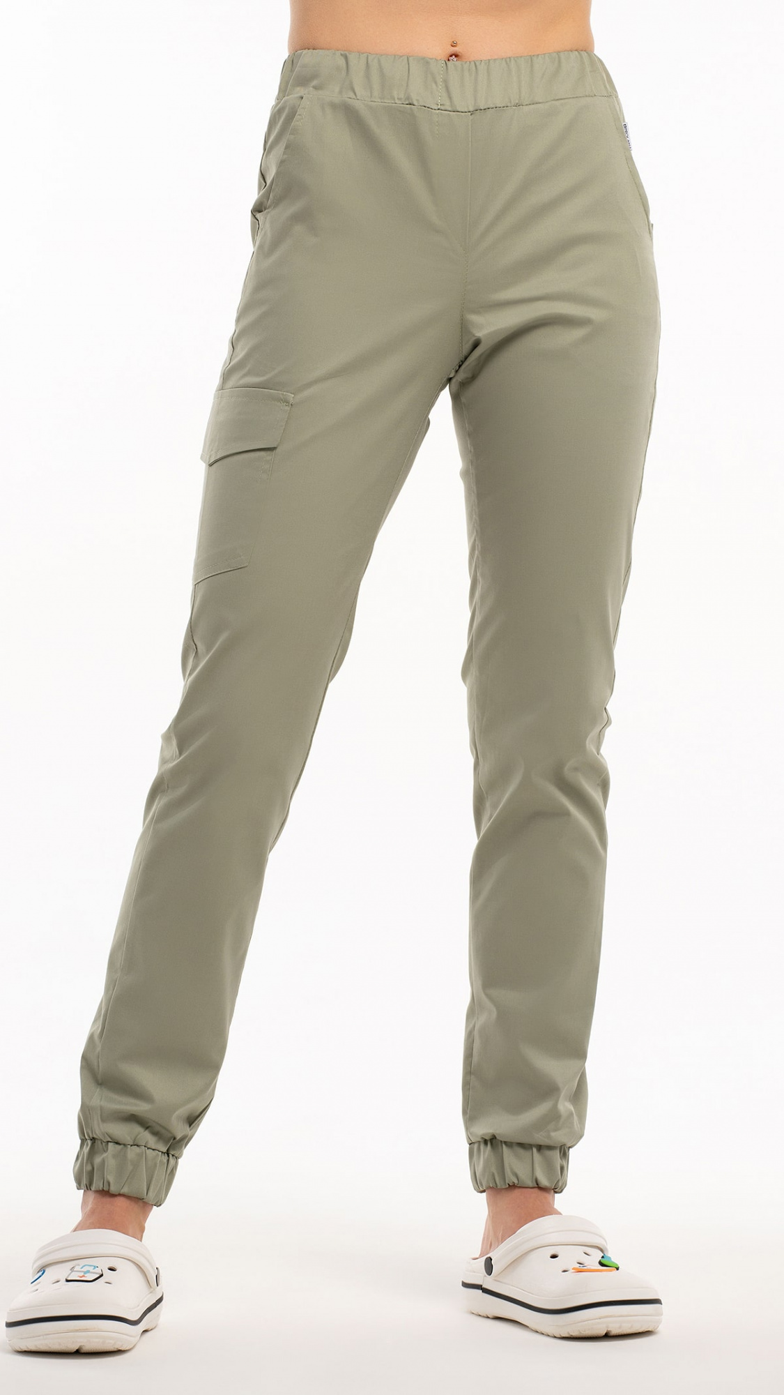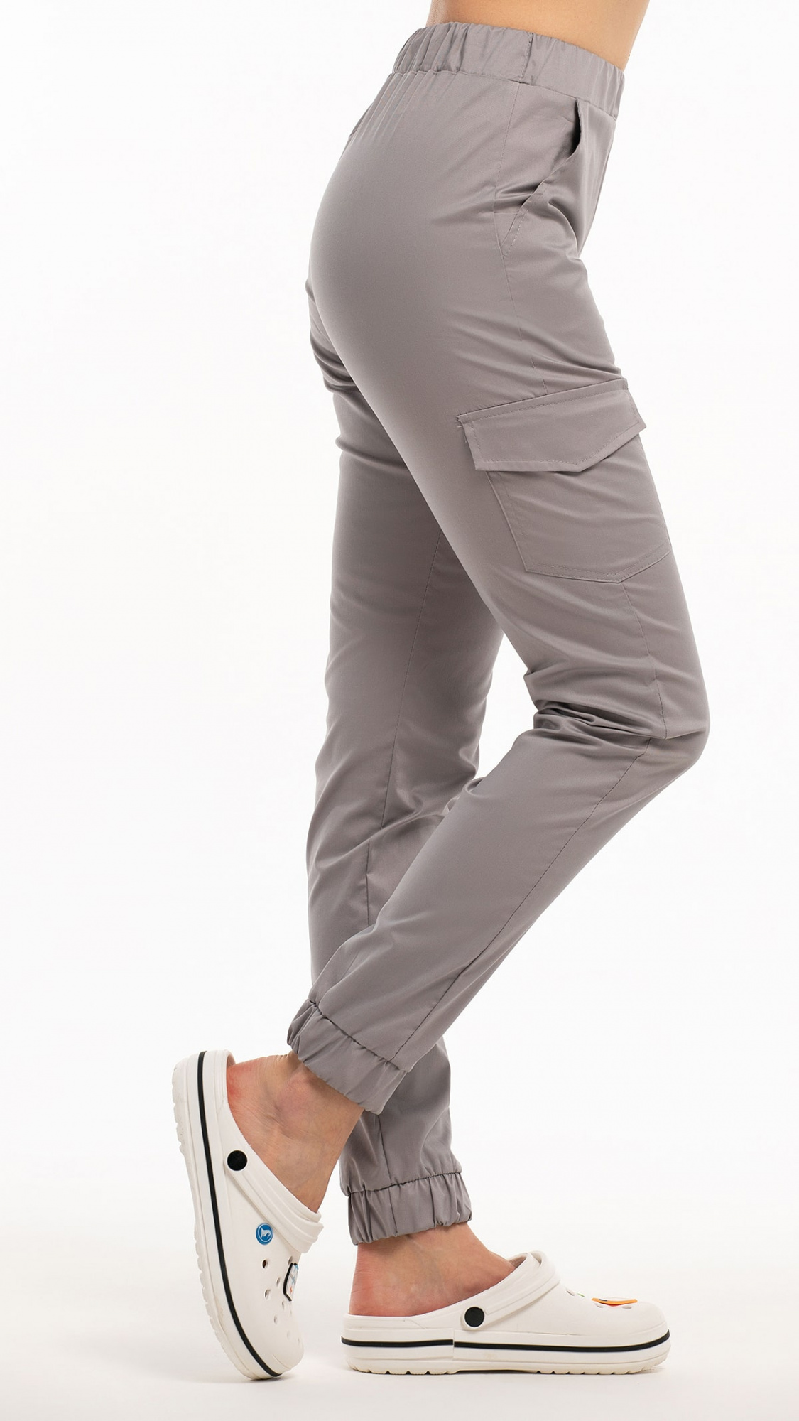 Низ брюк обработан притачными манжетами с эластичной тесьмой внутри.