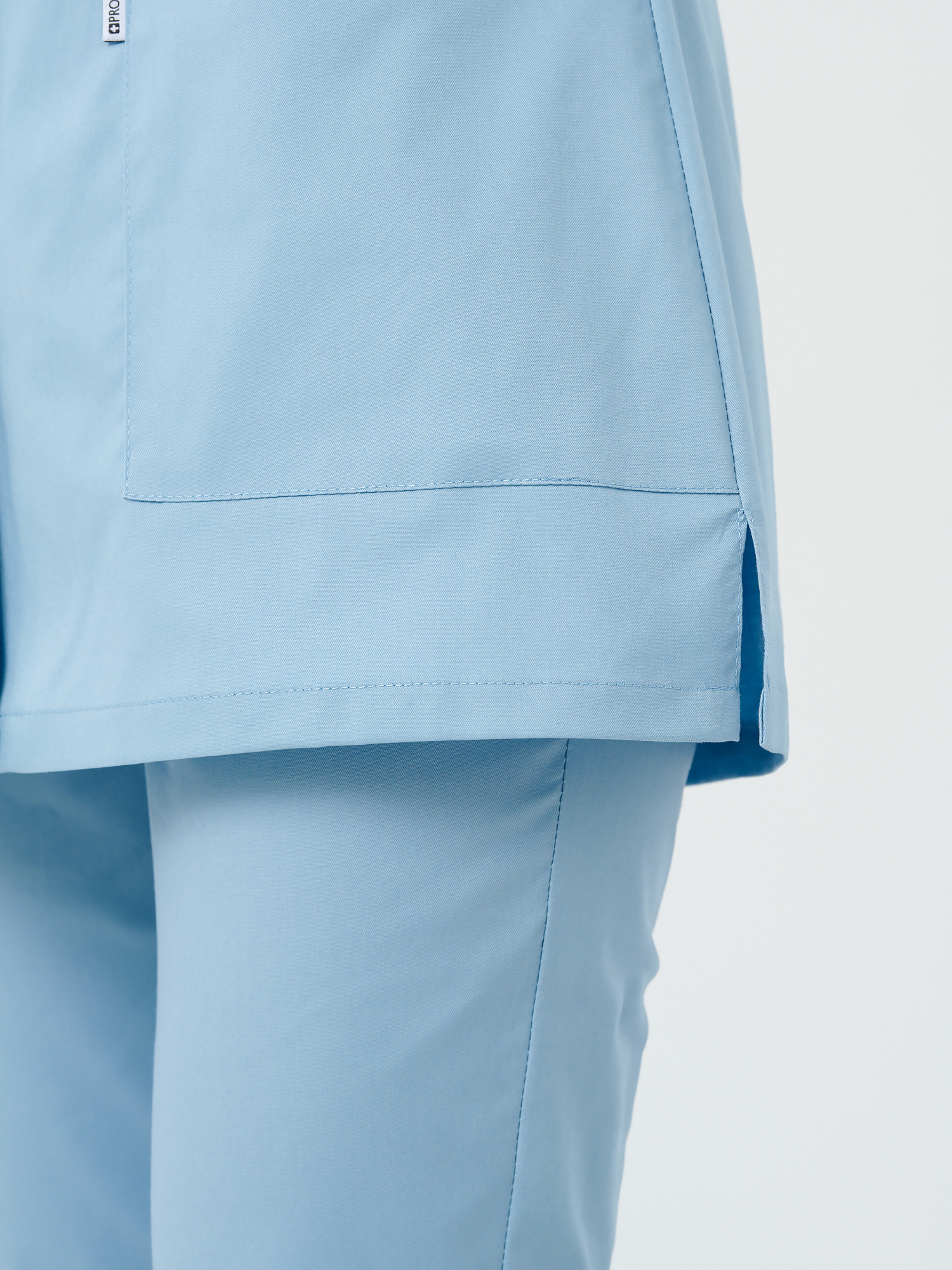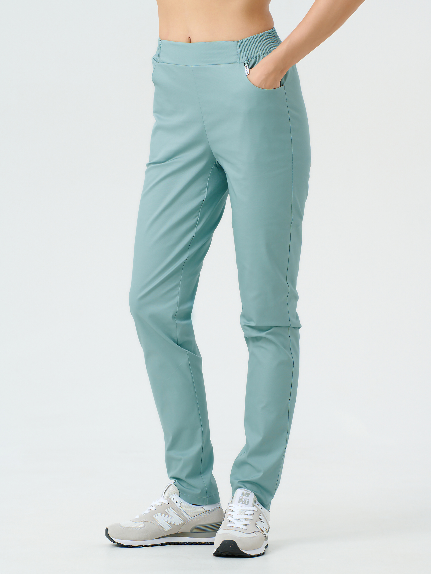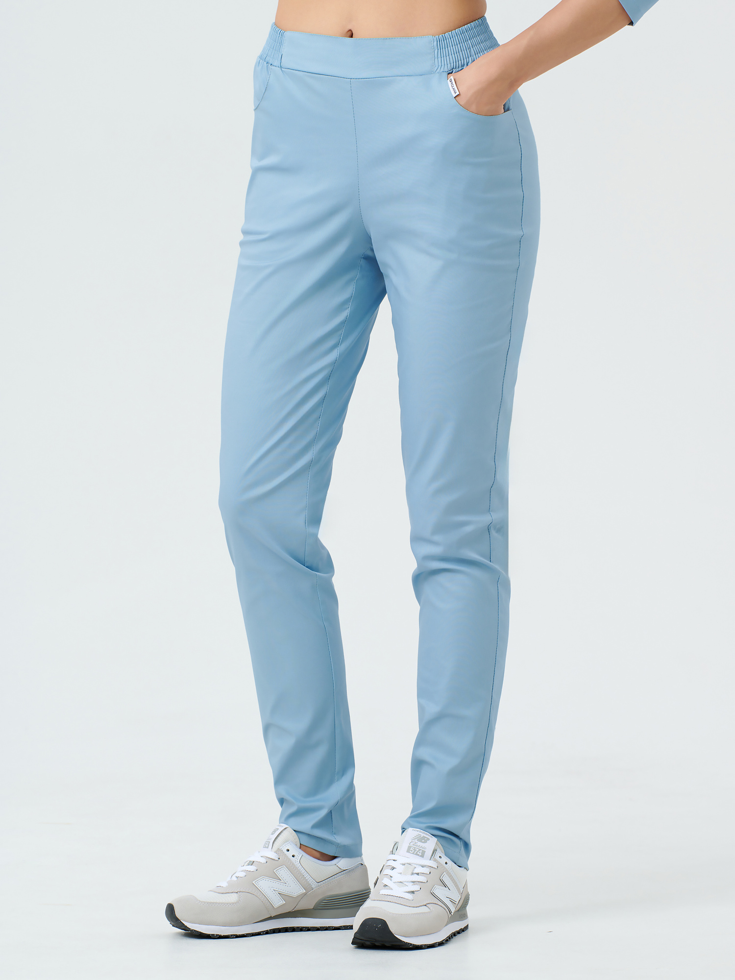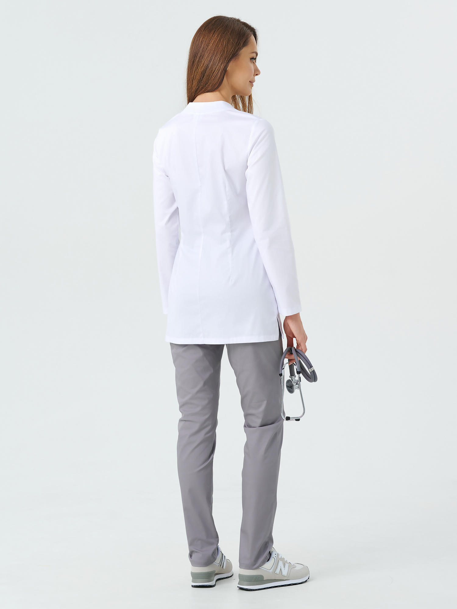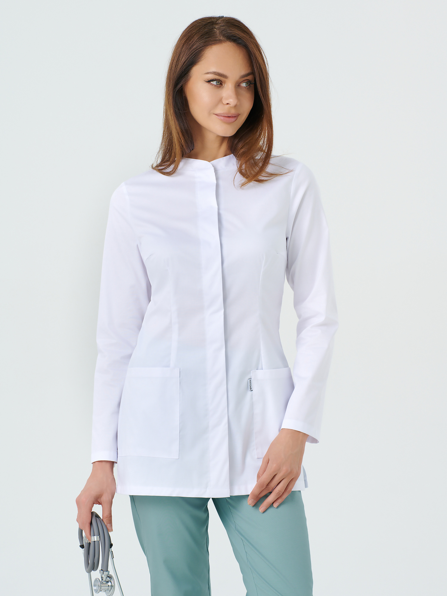 Костюм медицинский женский состоит из блузы и брюк.Блузы полуприлегающего силуэта с супатной застежкой на 8 кнопок, с боковыми разрезами.
