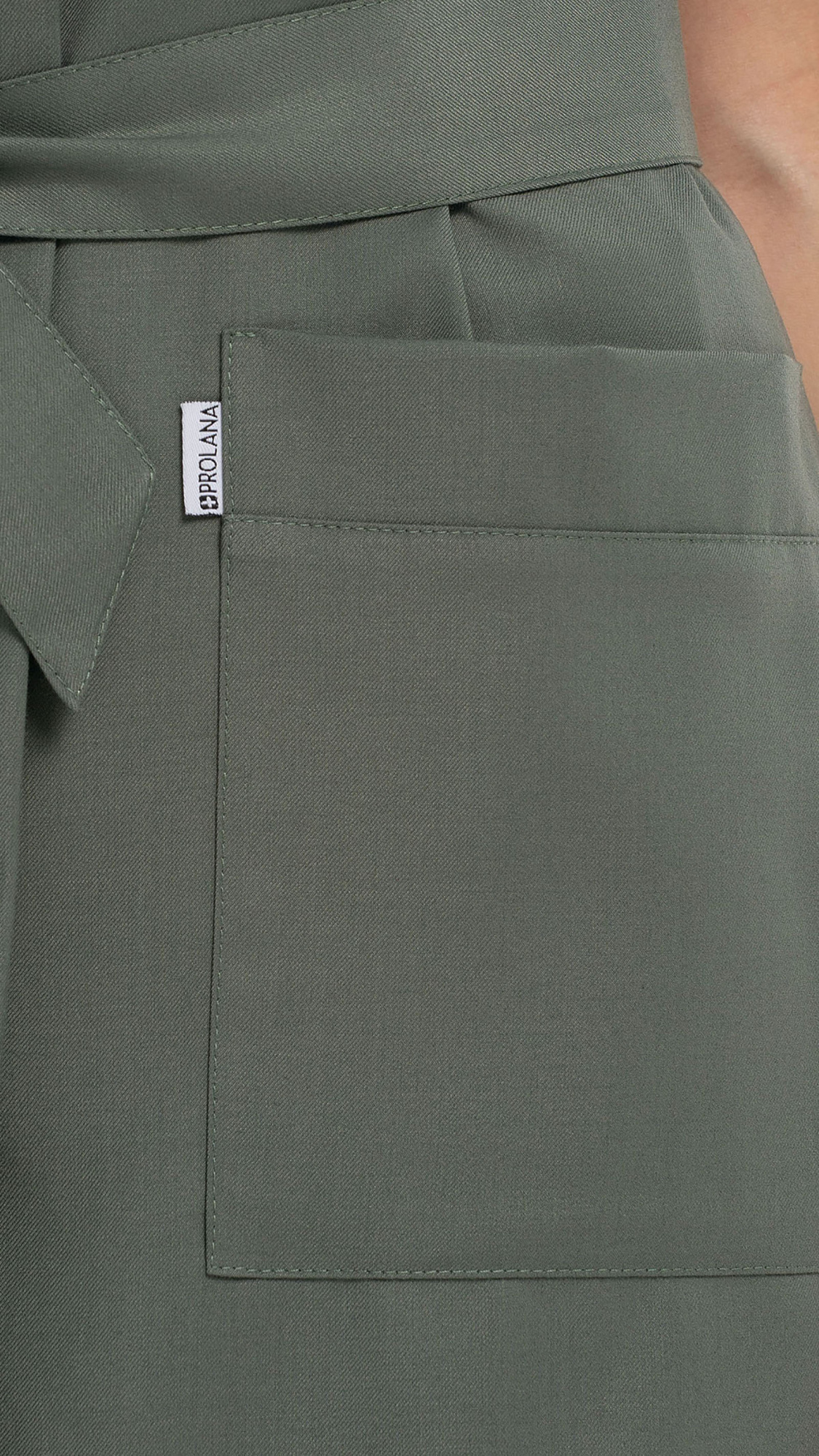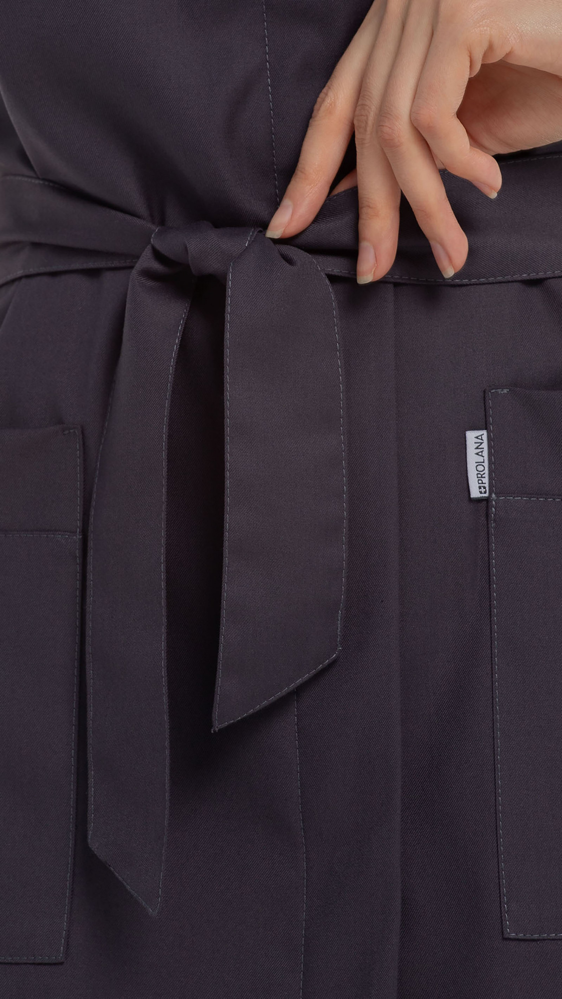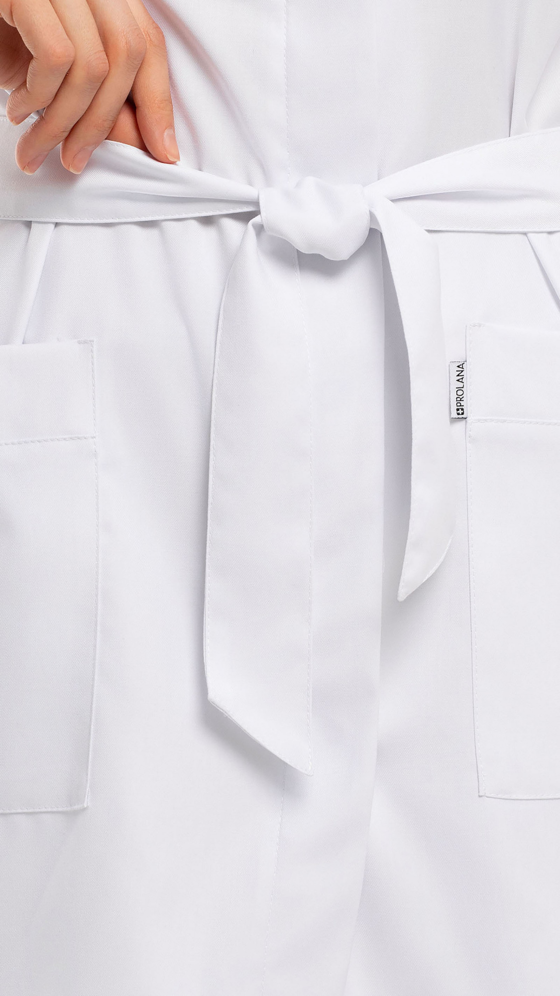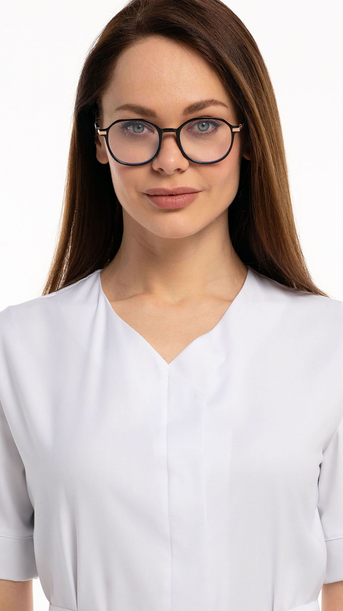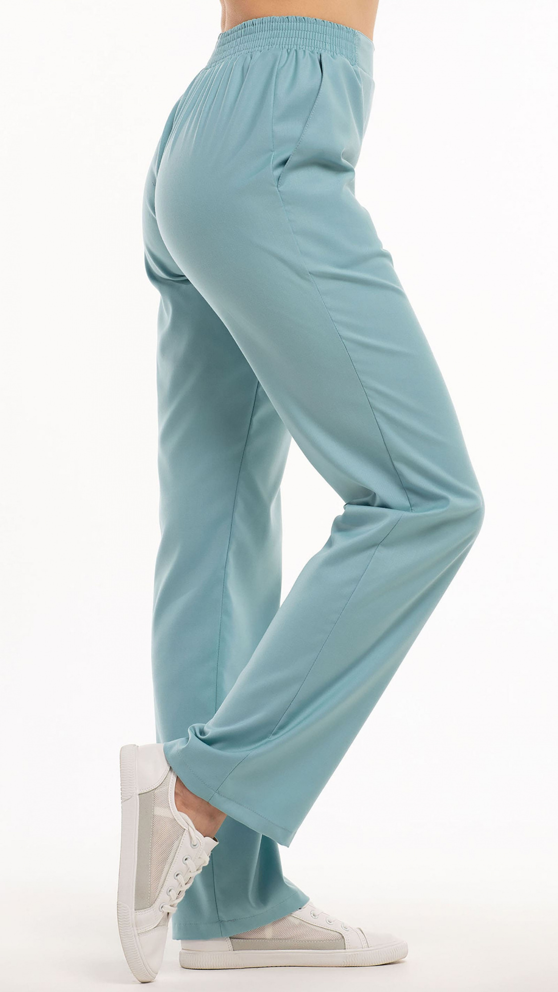 Костюм медицинский женский состоит из удлиненной блузы и брюк.Блуза прямого силуэта со смещенной супатной застежкой на 7 кнопок, с V-образным вырезом горловины, с поясом.