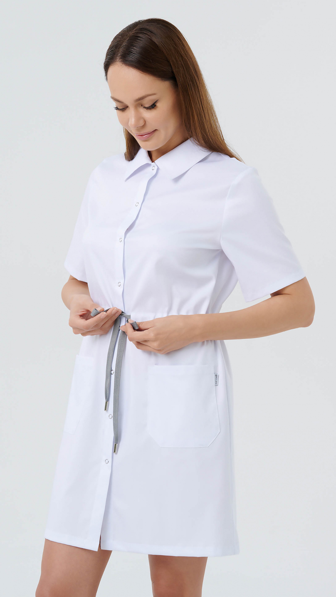 Женский медицинский халат «Эшли» — это современная модель рубашечного типа, в которой удачно сочетаются комфорт, практичность и аккуратный профессиональный внешний вид. Прямой силуэт обеспечивает свободу движений и удобную посадку, а центральная застежка на кнопки делает халат удобным в повседневной носке. Такая модель отлично подойдет для врачей, администраторов клиник, косметологов, фармацевтов, специалистов салонов и других сотрудников, которым важно выглядеть опрятно, уверенно и профессионально в течение всего дня.